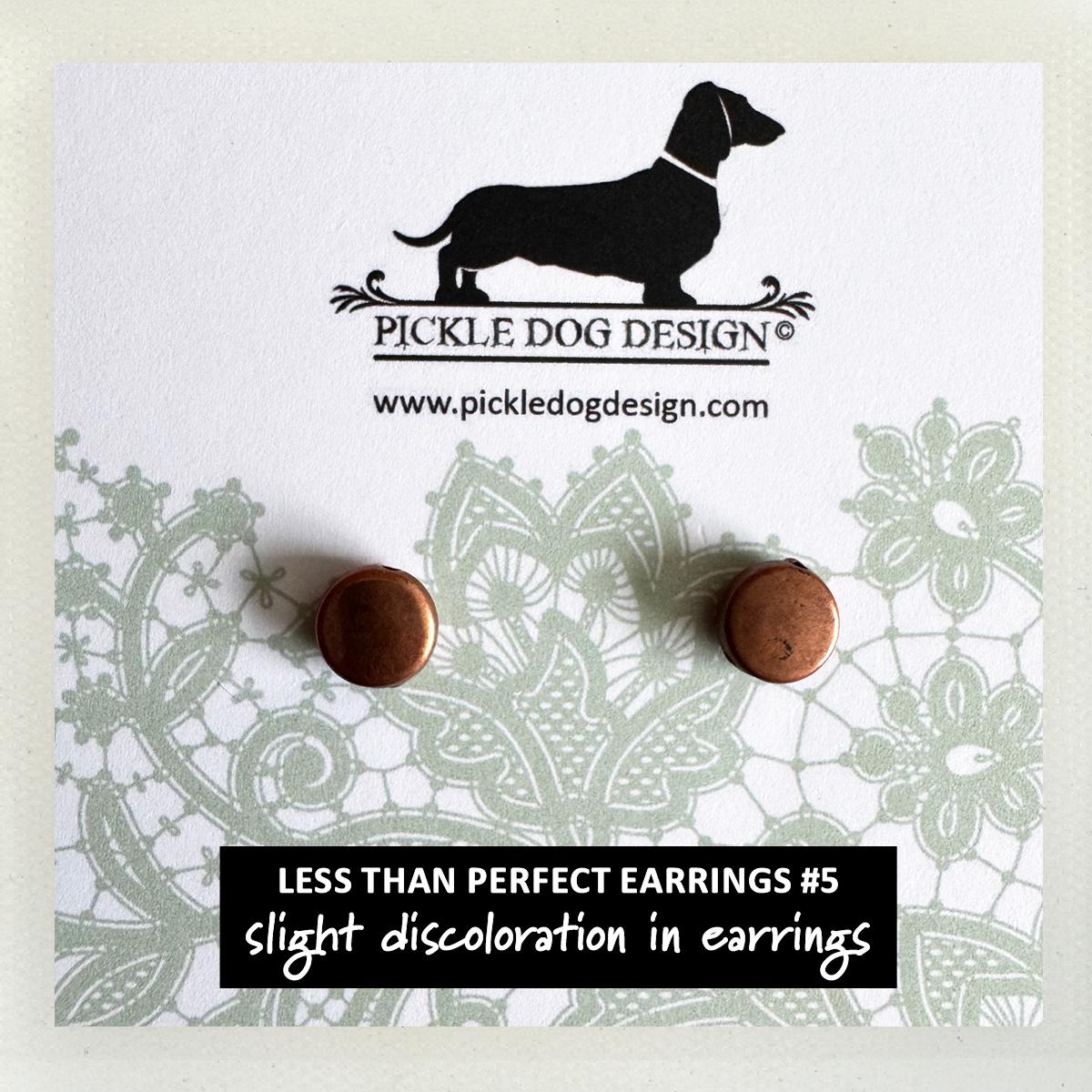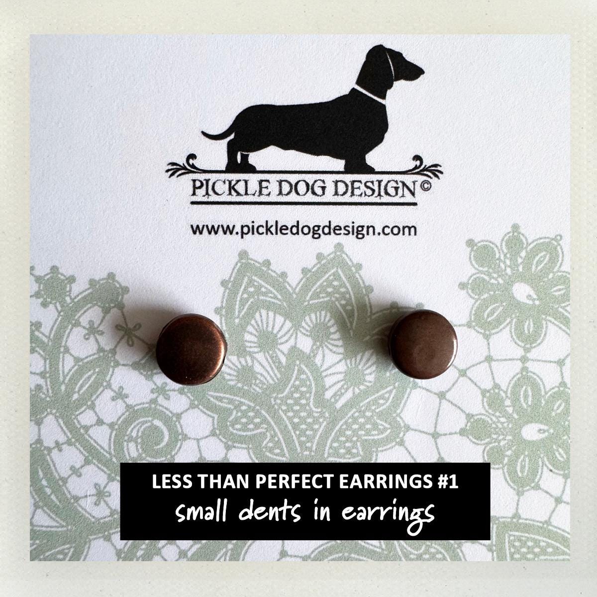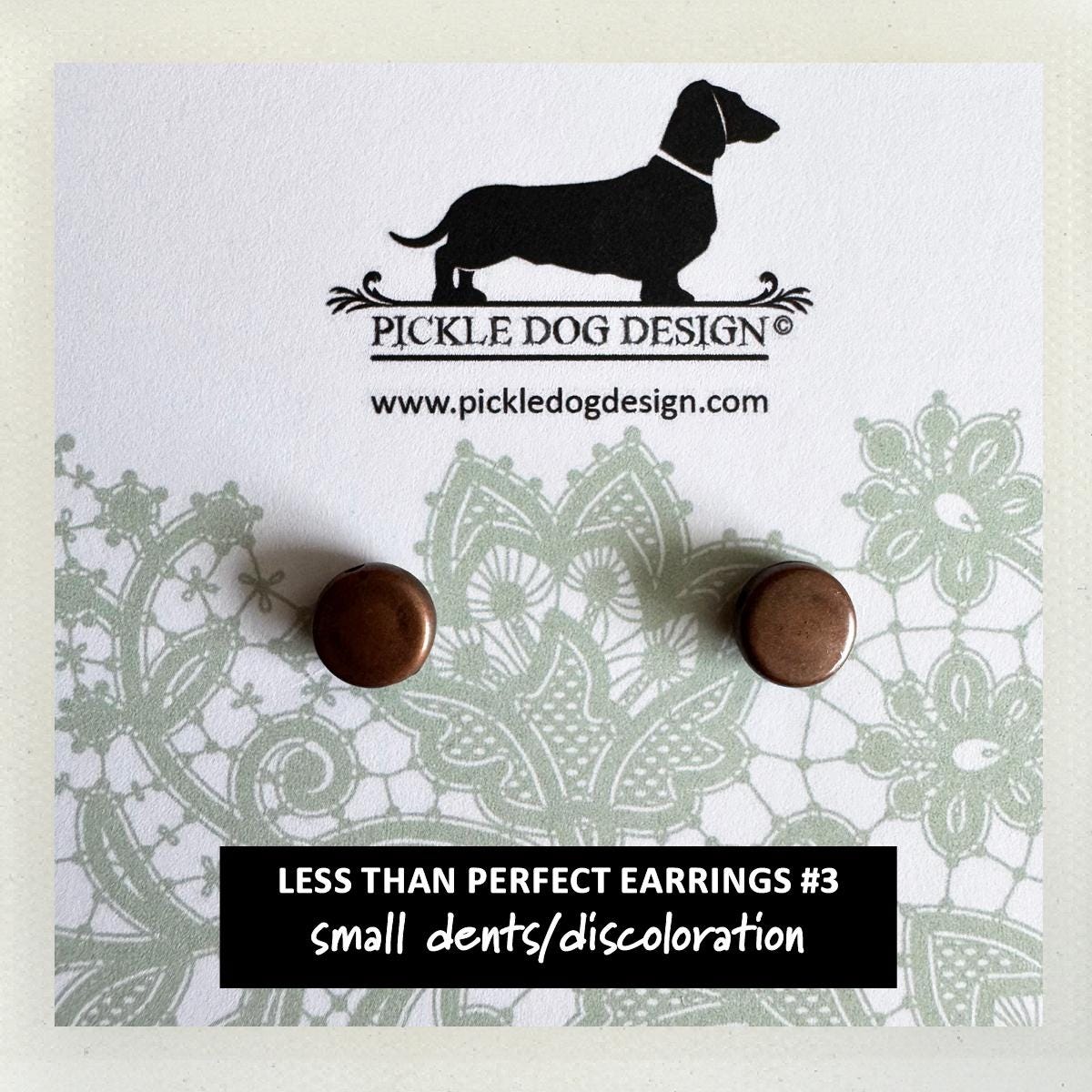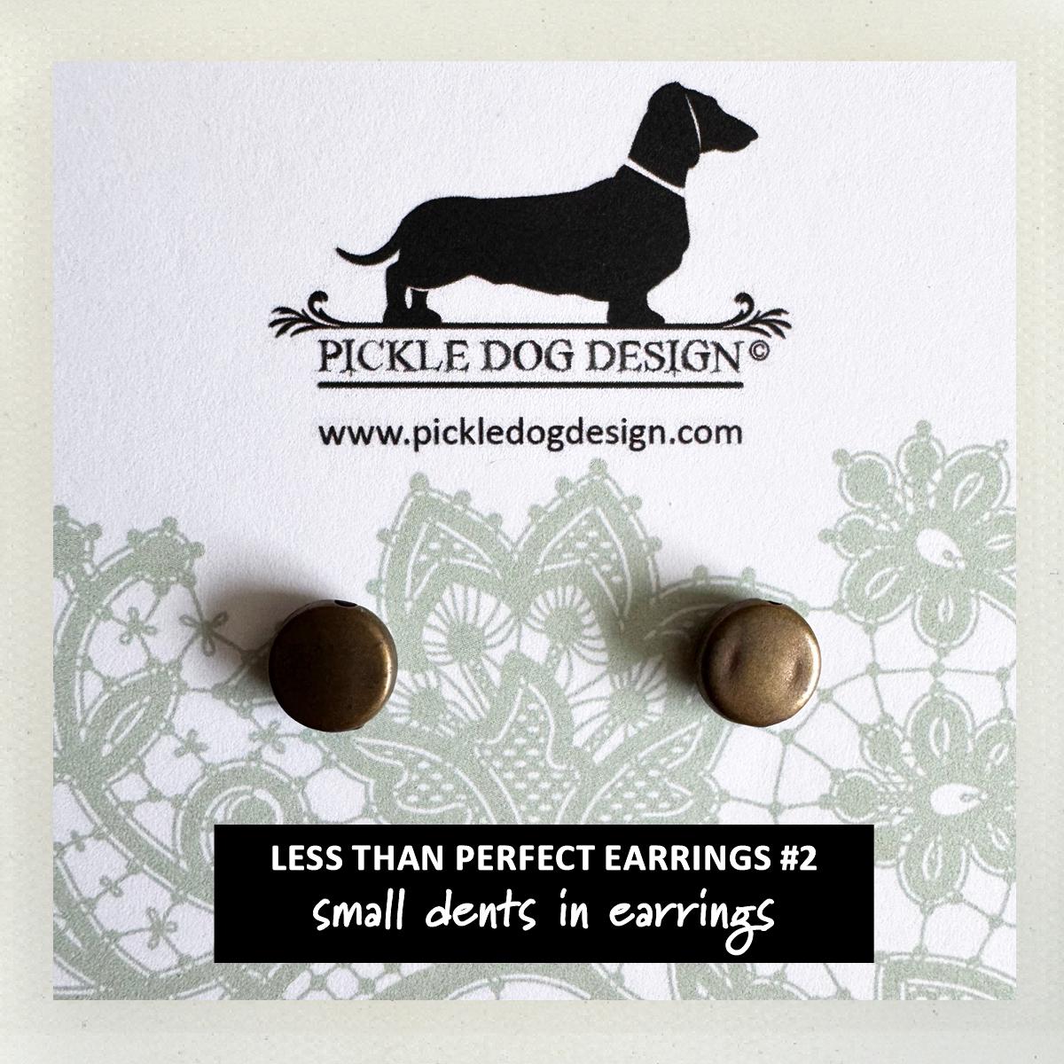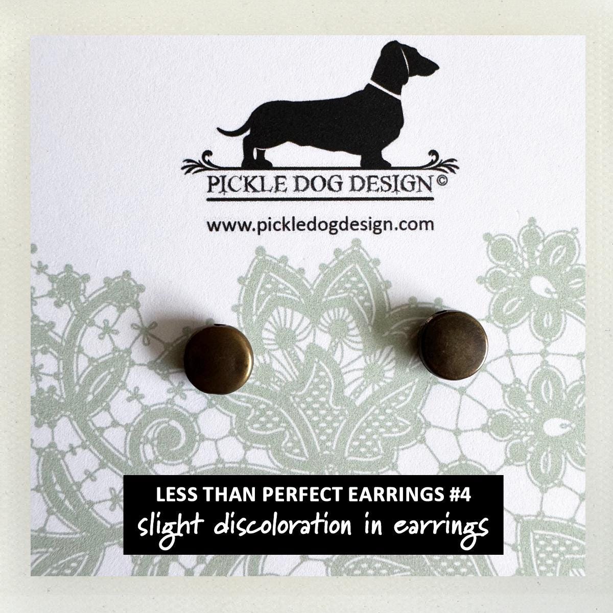 If you don't mind slight imperfections, then you found a deal! These earrings each have a slight imperfection of small dents or discoloration... and instead of tossing them, we're hoping that at a discounted price they'll find a loving home!