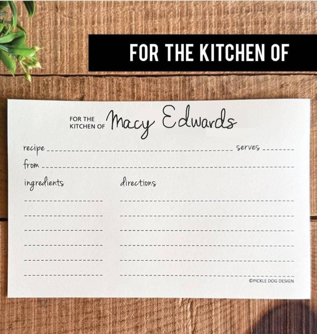 These recipe cards are perfect for any kitchen. Each card has been hand cut and printed on heavy cardstock. They make a wonderful gift for a hostess, bridal shower, birthday, housewarming party, or any other occasion!