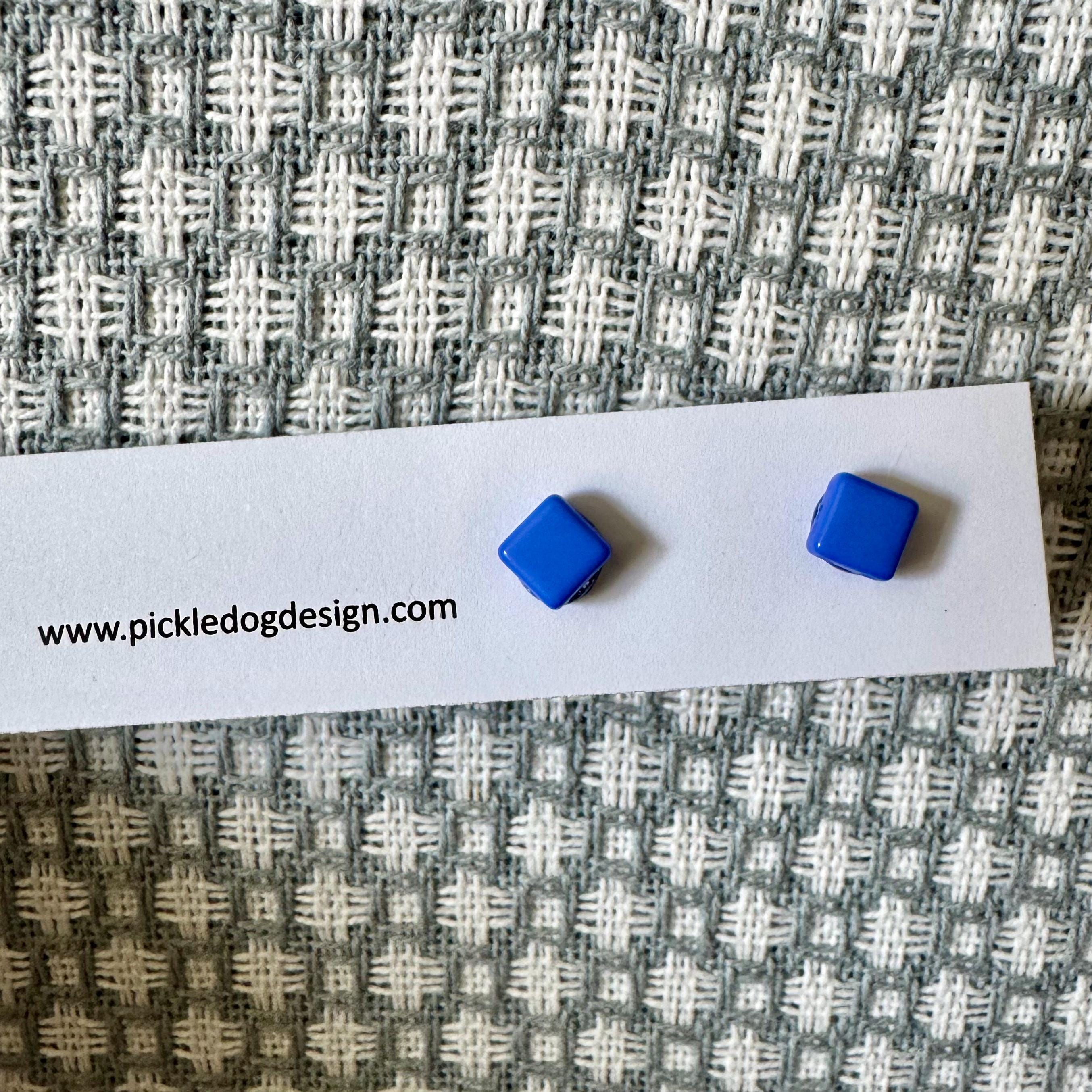 Blue Square. Post Earrings