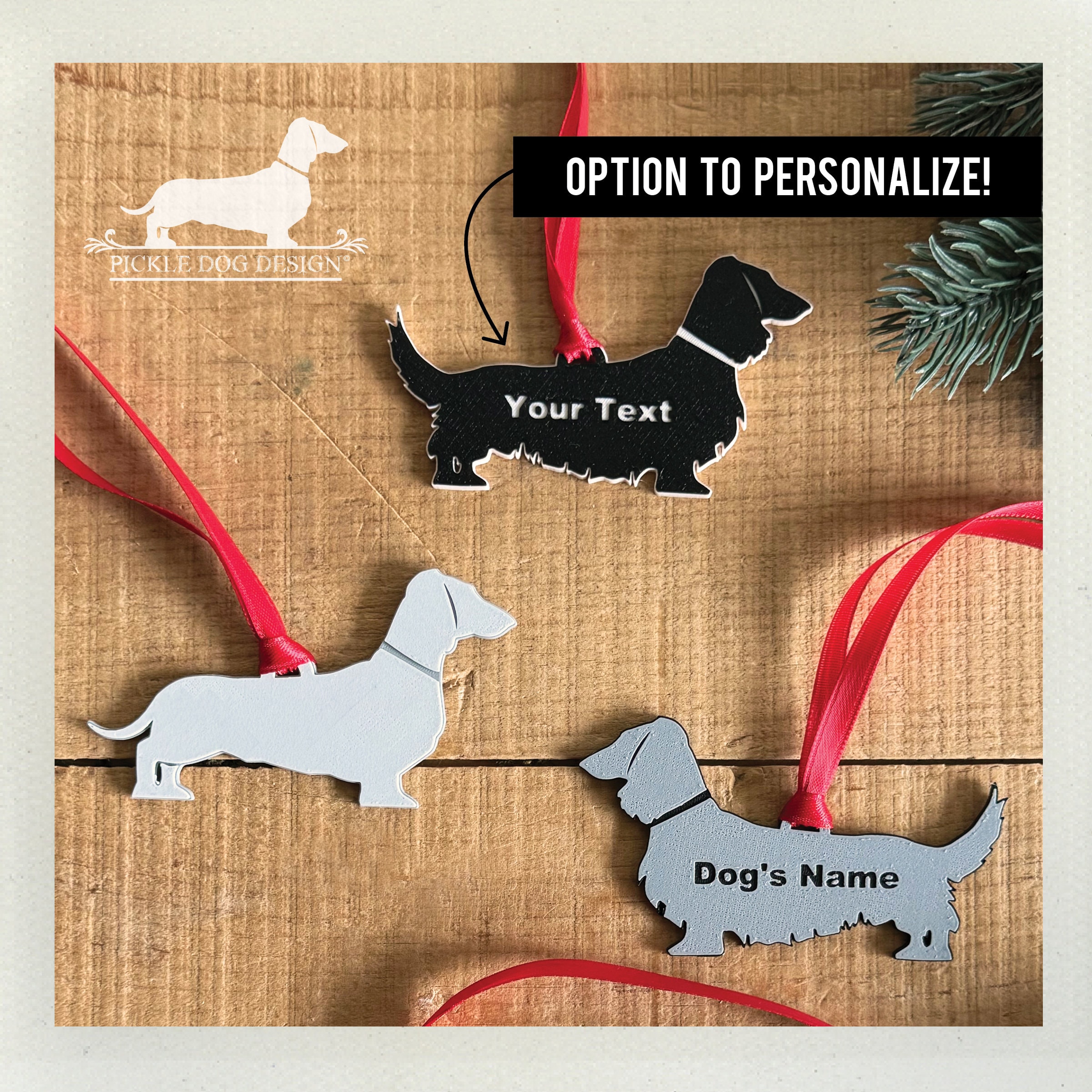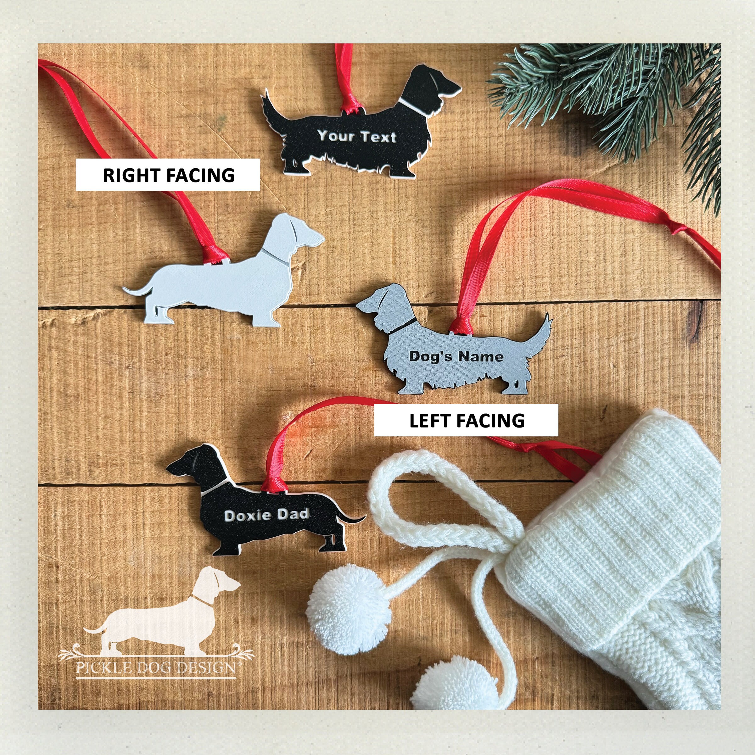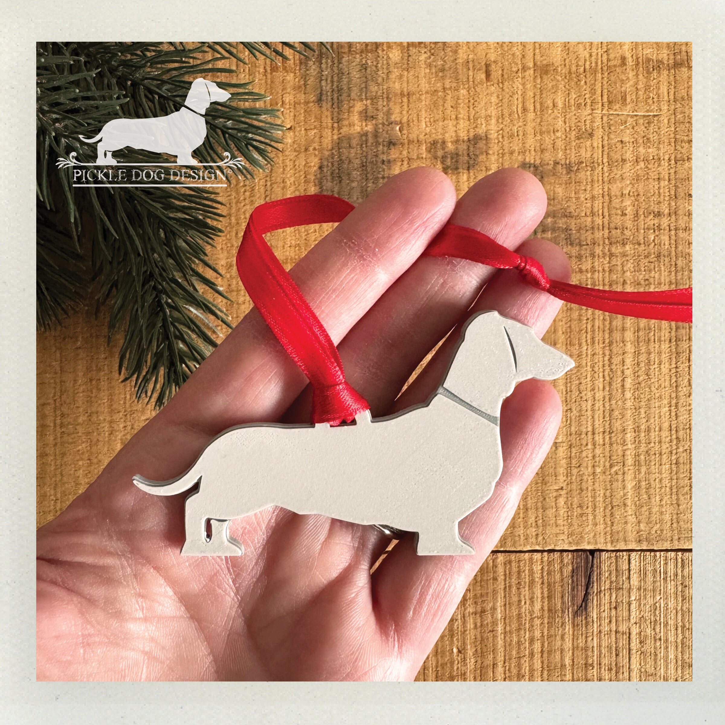 It's time to 'dach' the halls and adorn your Christmas tree with this limited edition dachshund ornament! Featuring our exclusive design design 3D printed with PLA filament. Makes a perfect gift for a doxie lover—if you don't end up keeping it yourself!