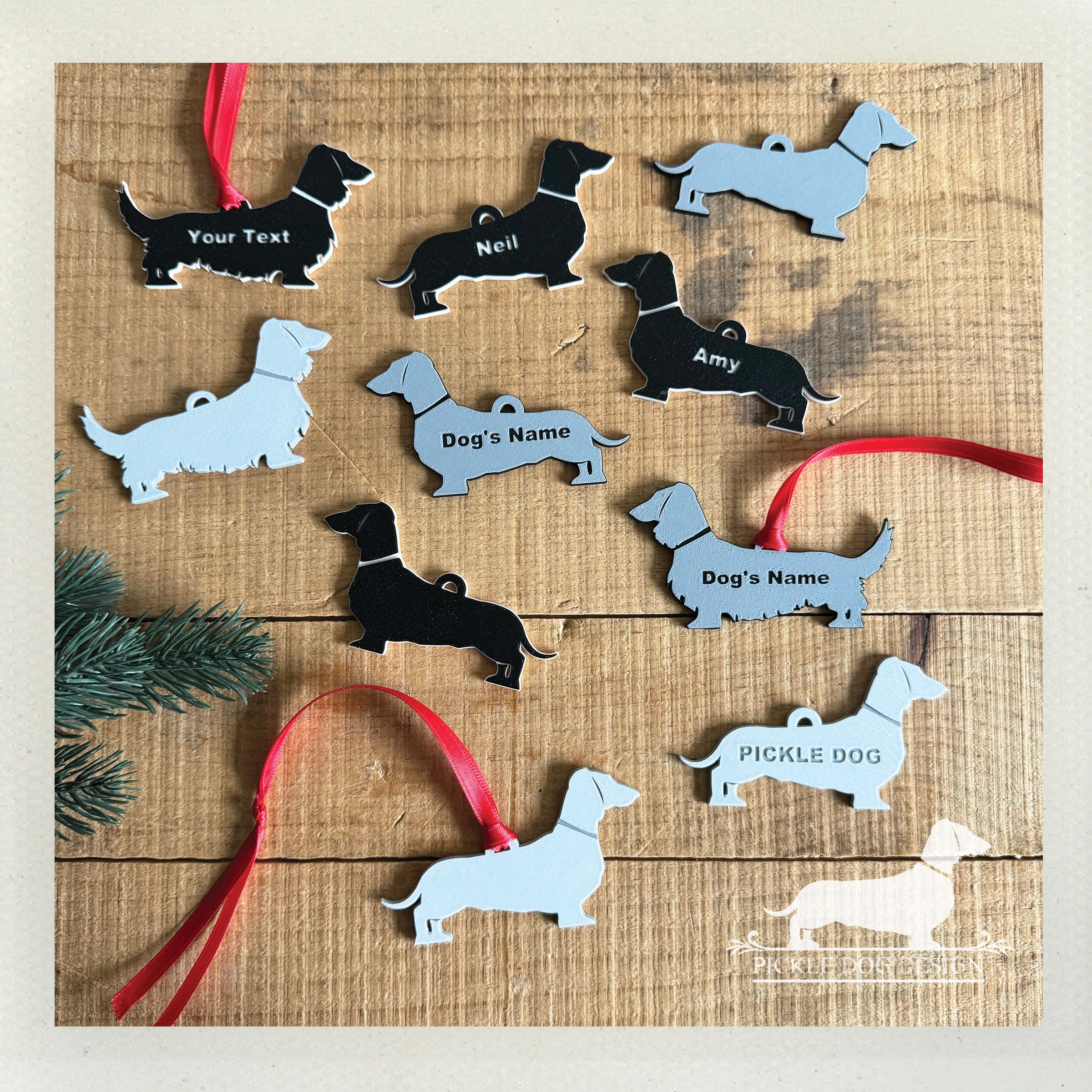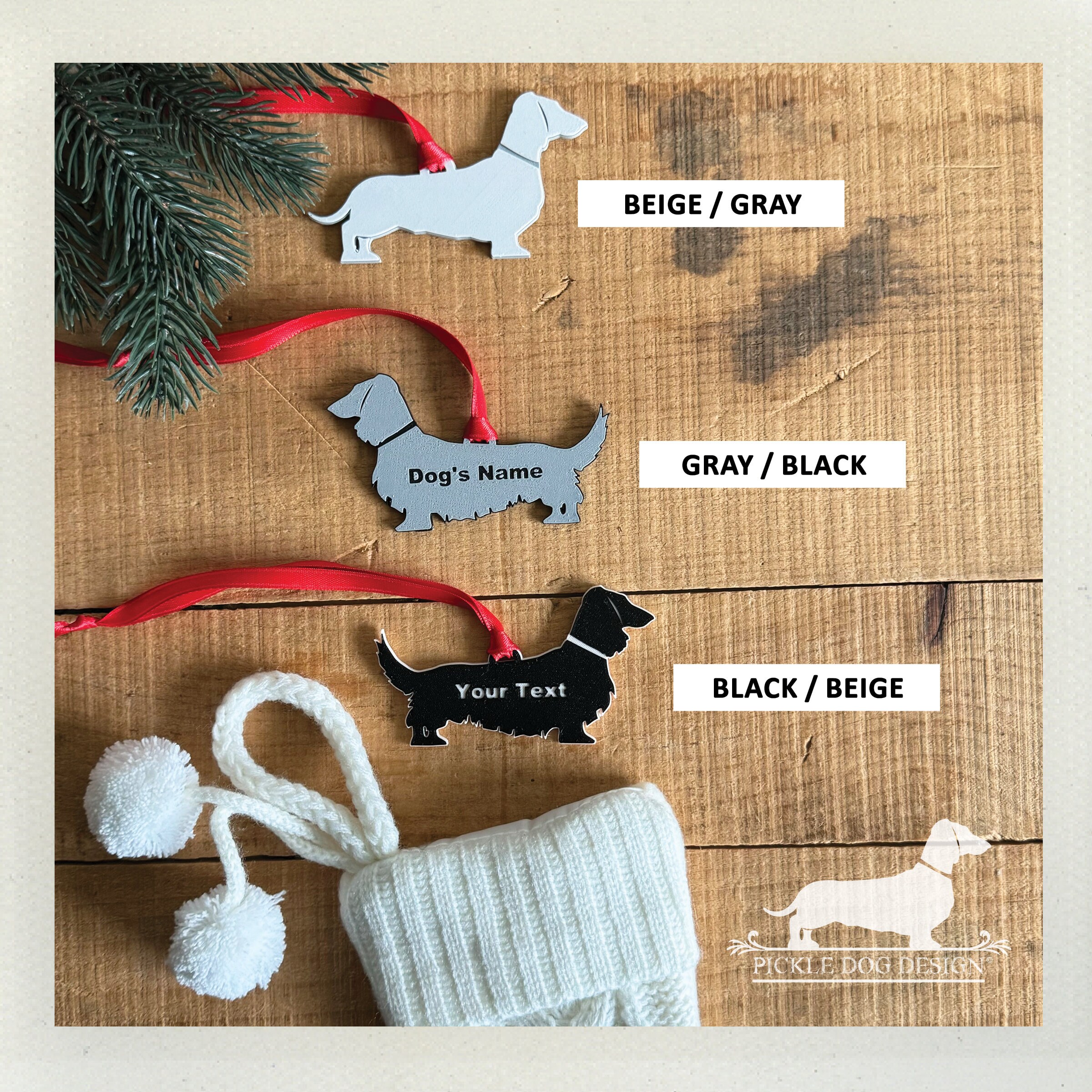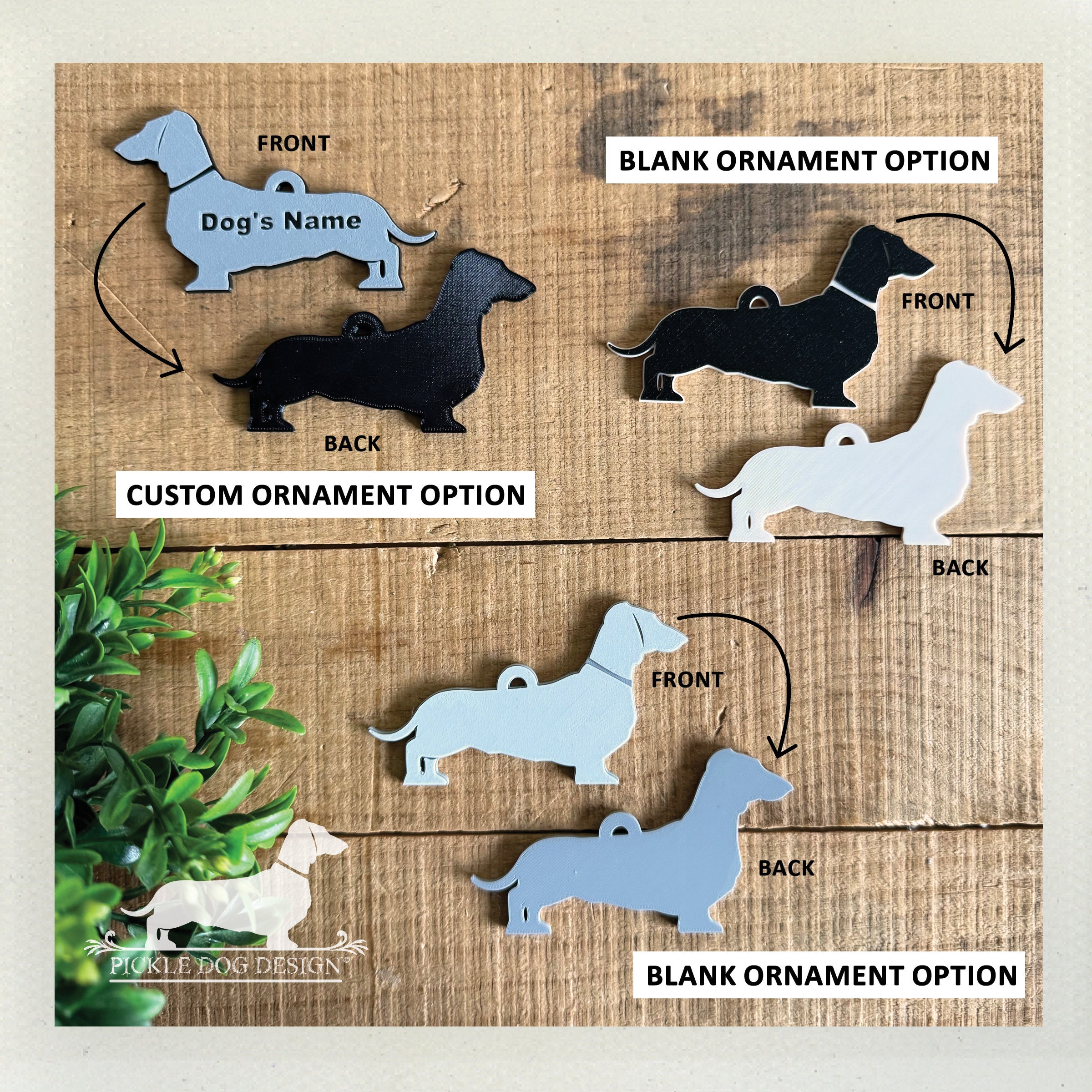 It's time to 'dach' the halls and adorn your Christmas tree with this limited edition dachshund ornament! Featuring our exclusive design design 3D printed with PLA filament. Makes a perfect gift for a doxie lover—if you don't end up keeping it yourself!