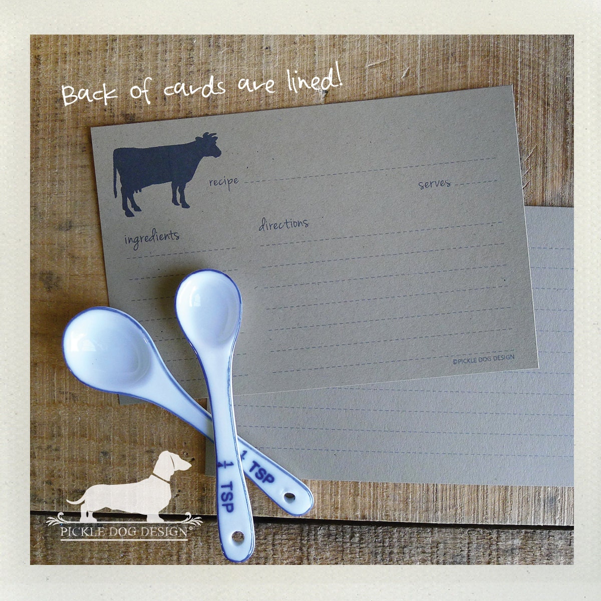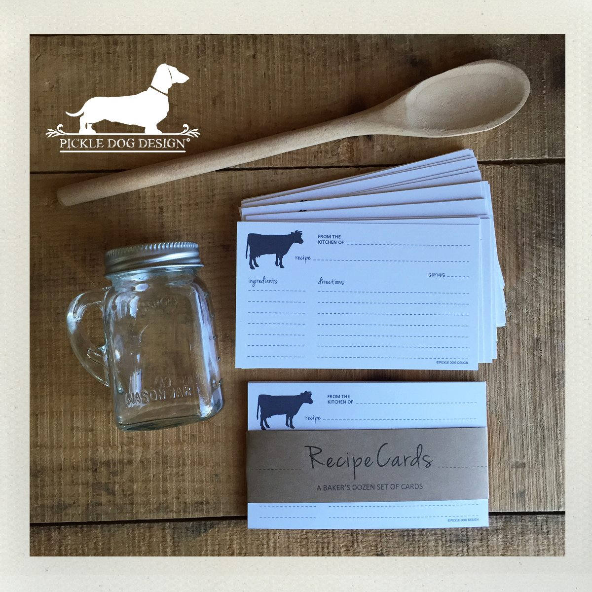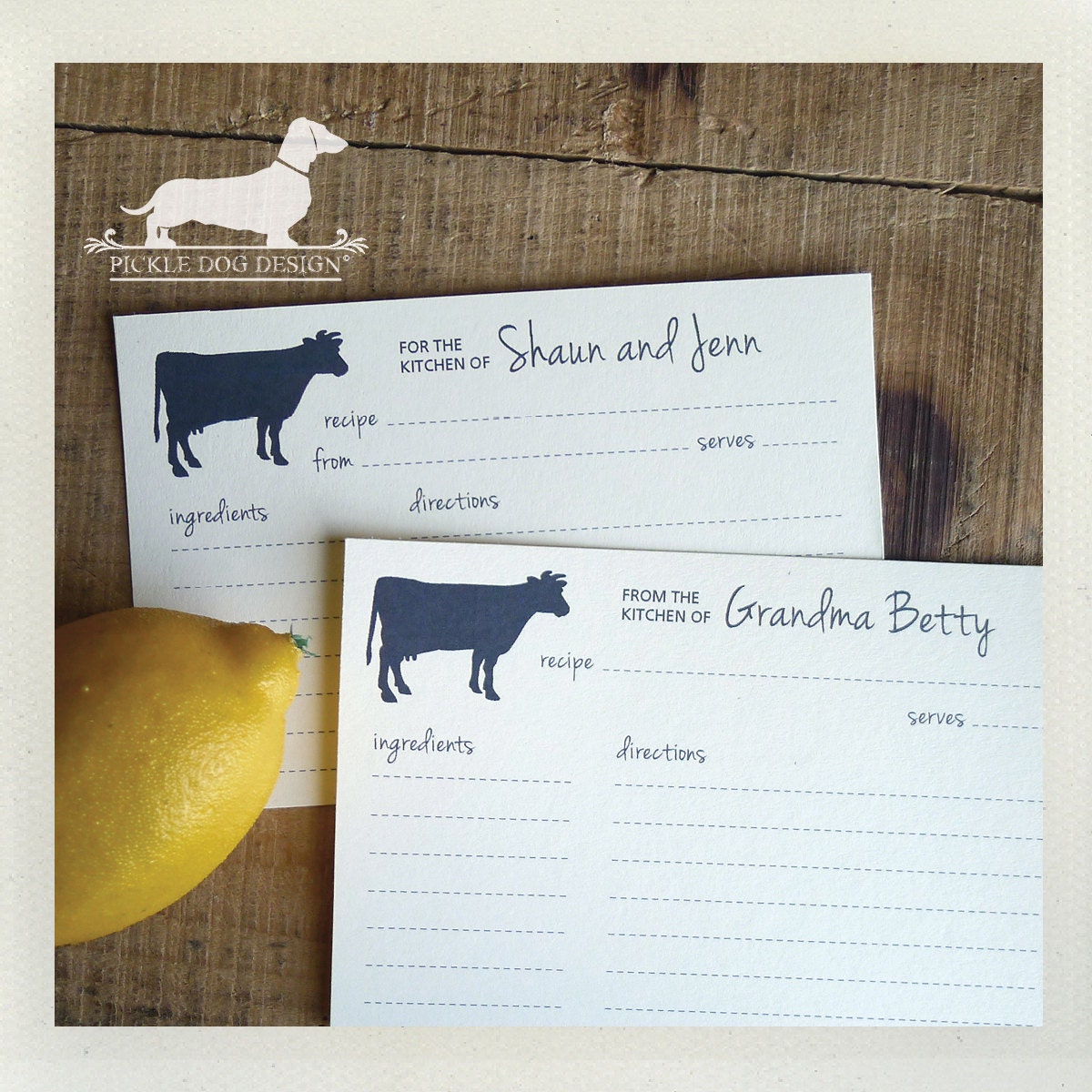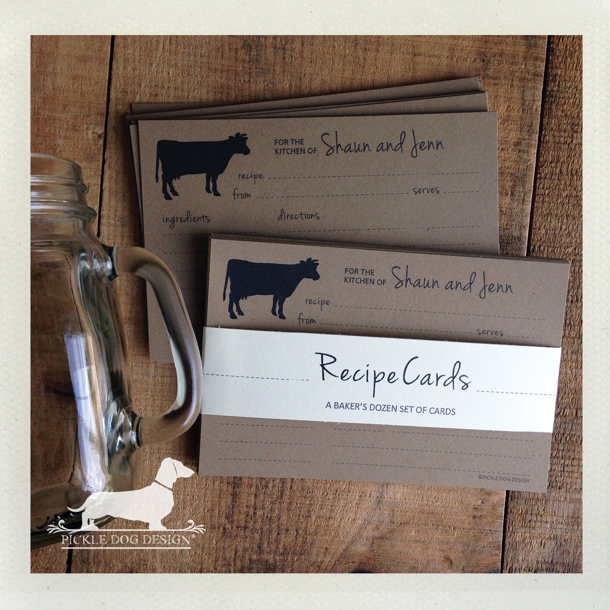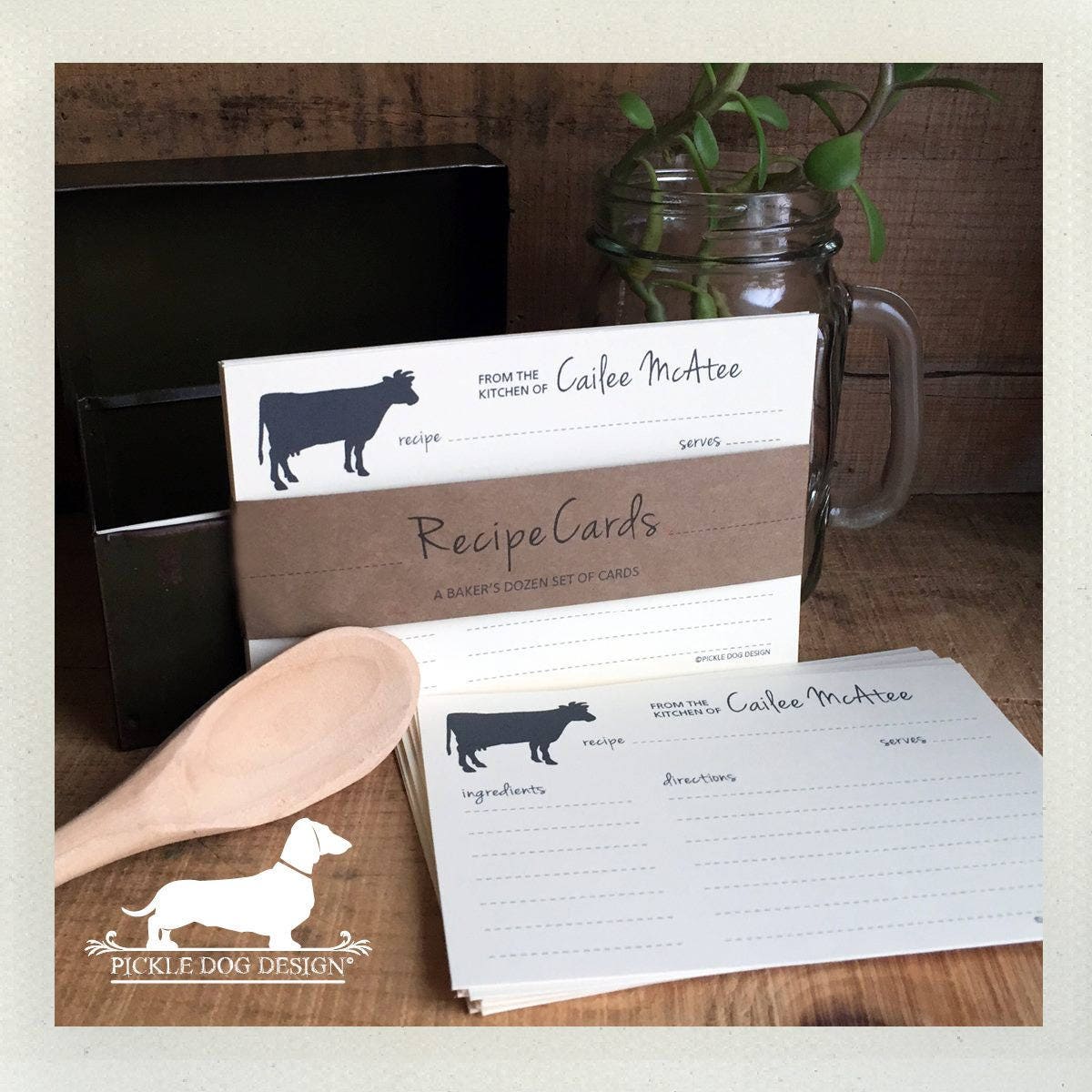 Cow. Free Personalization. A Baker's Dozen (Qty 13) Set of Recipe Cards