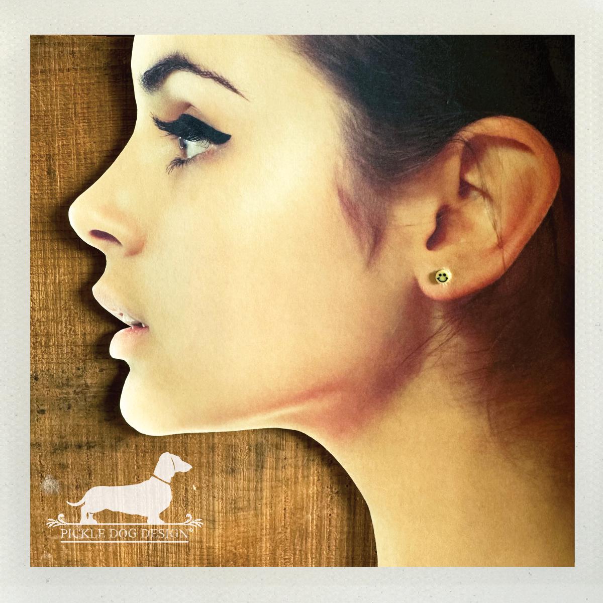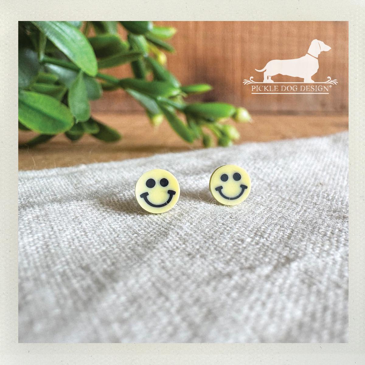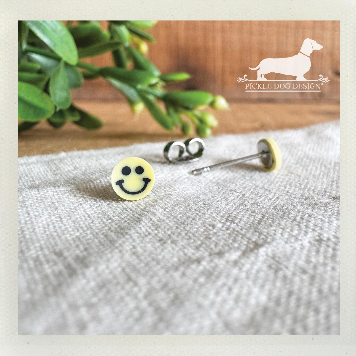 Mini Yellow Smiley Face. Post Earrings