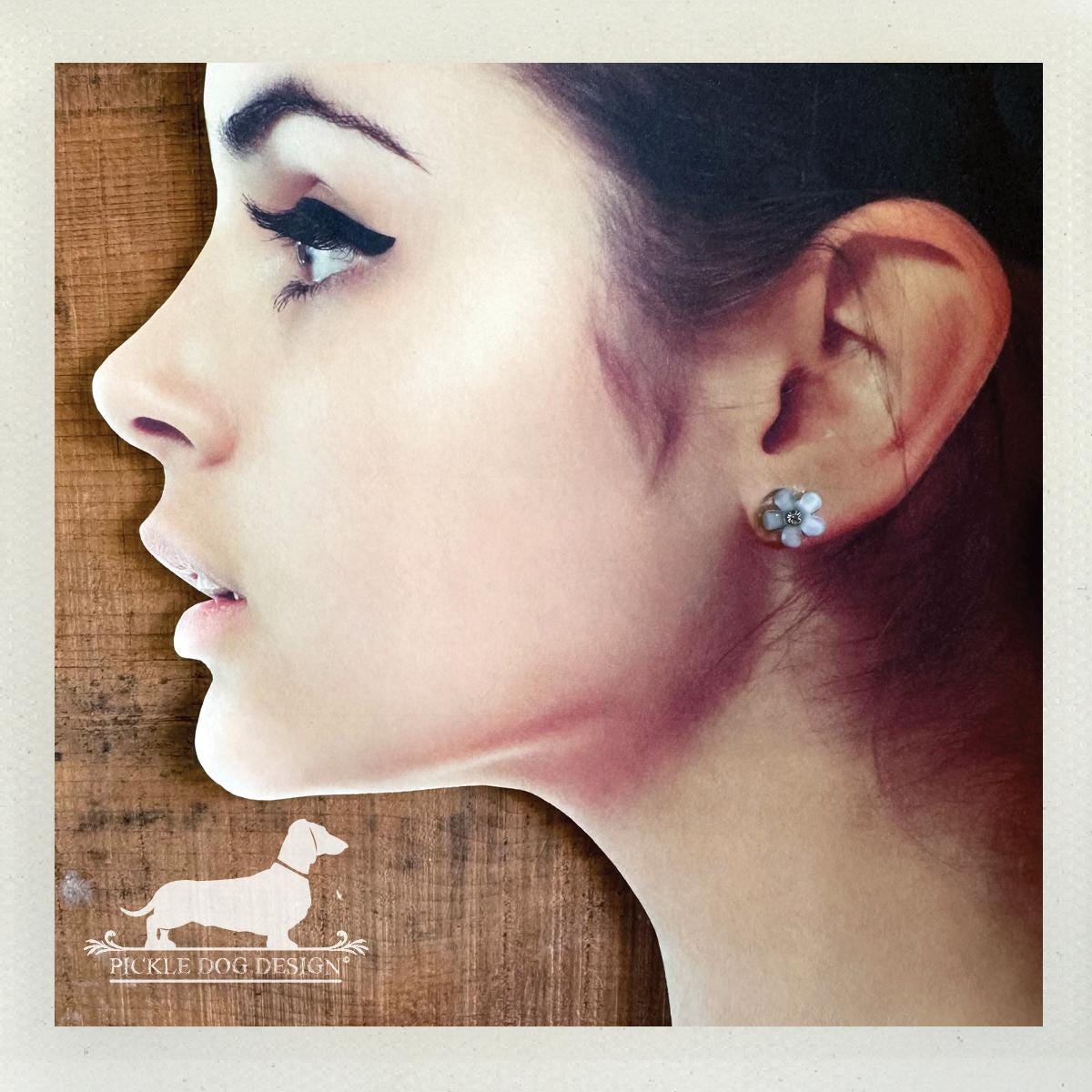 Adhered securely to nickel free metal earring posts with nickel free backs.
