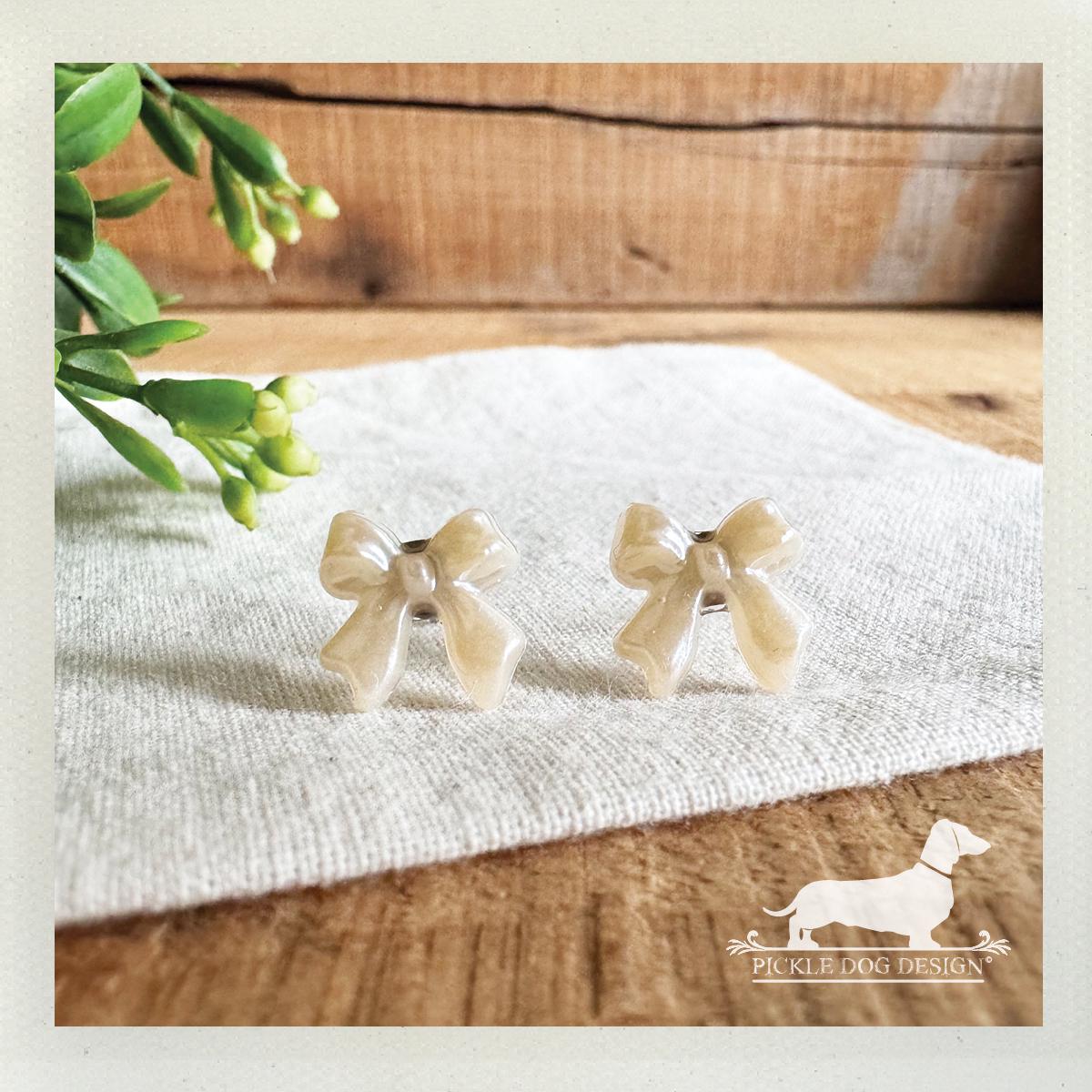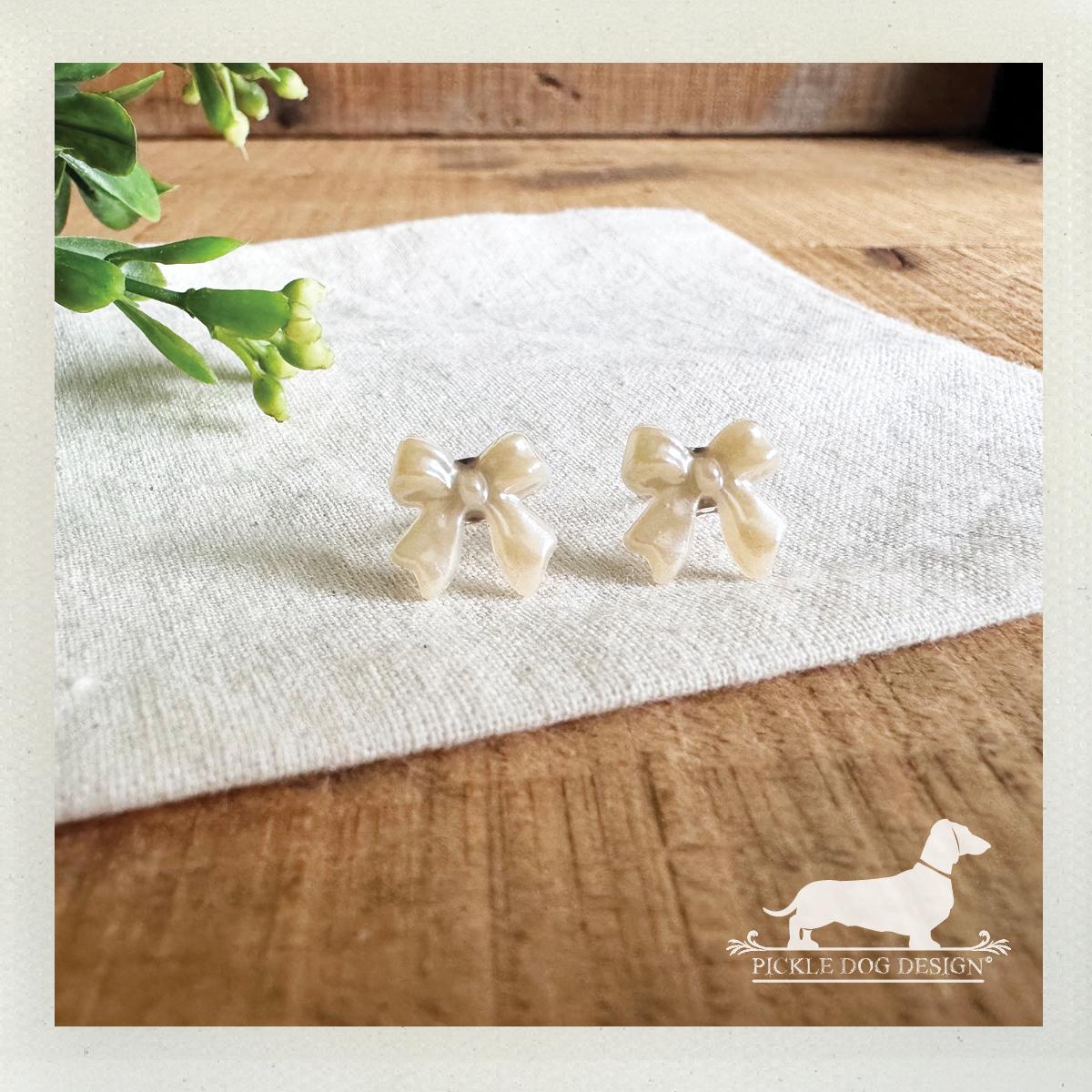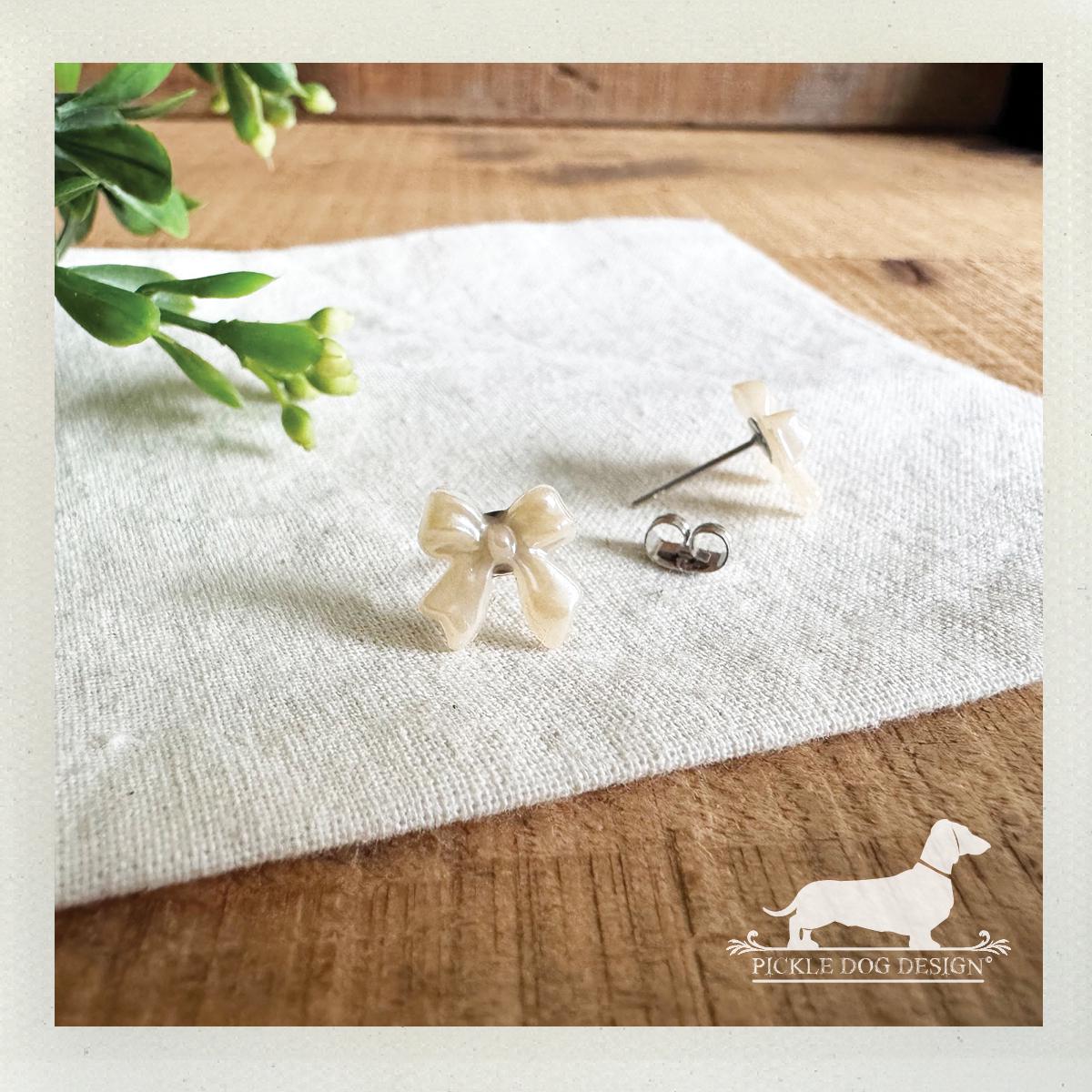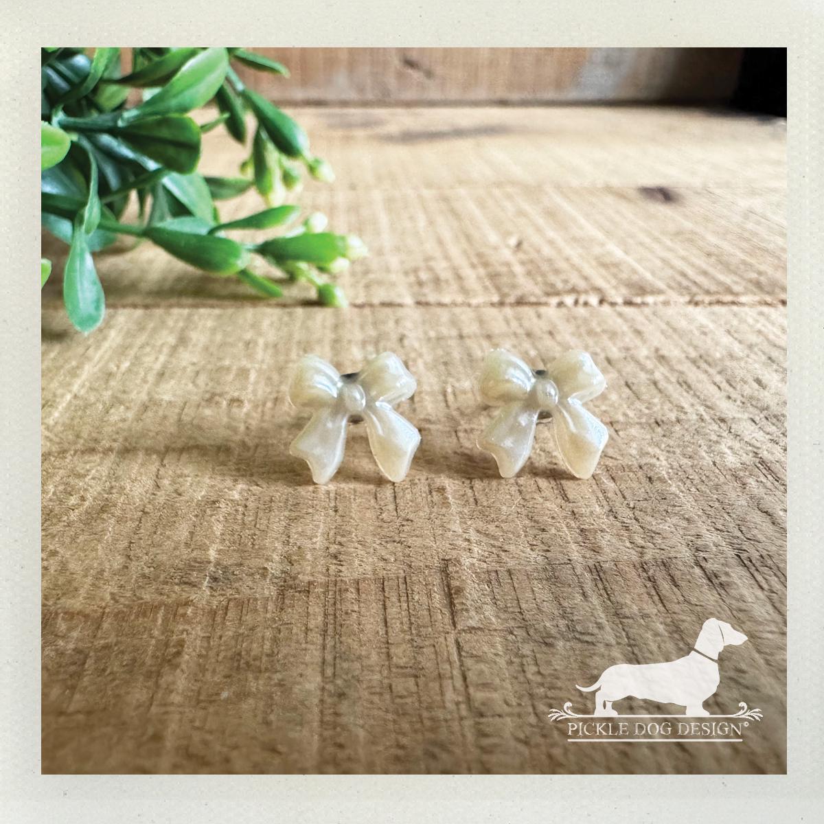Pearl Bow. Post Earrings