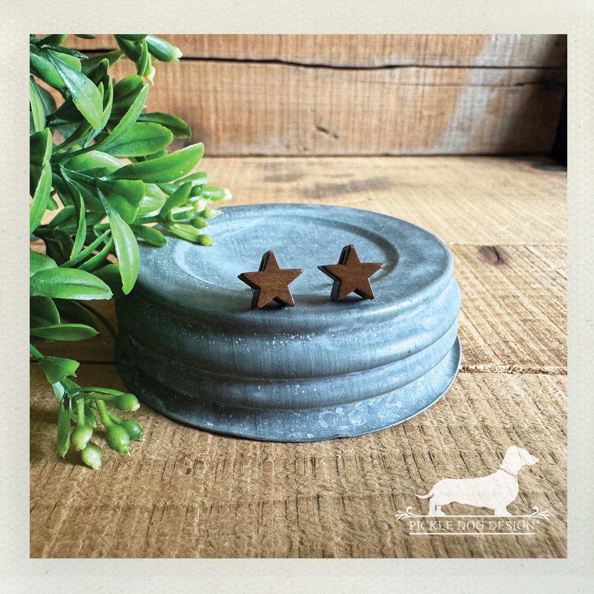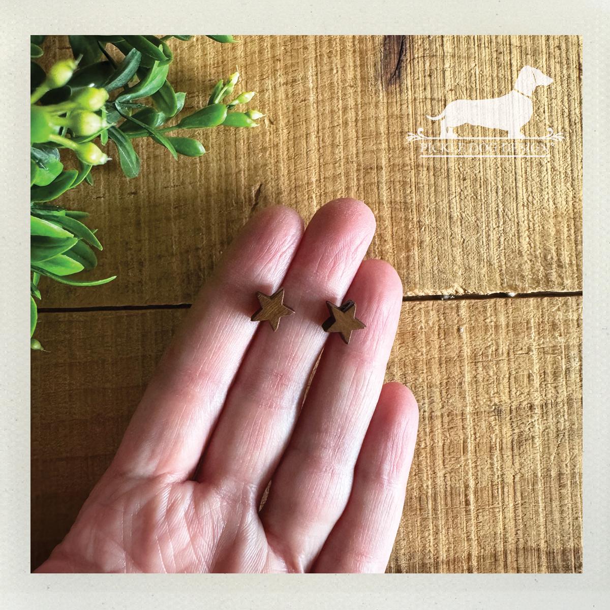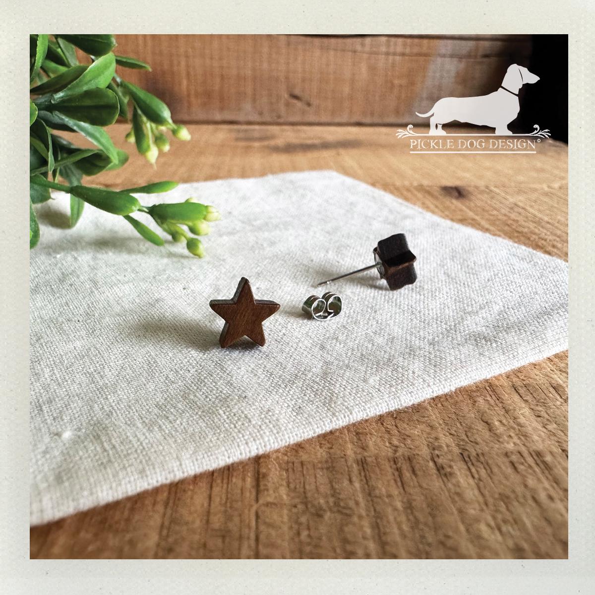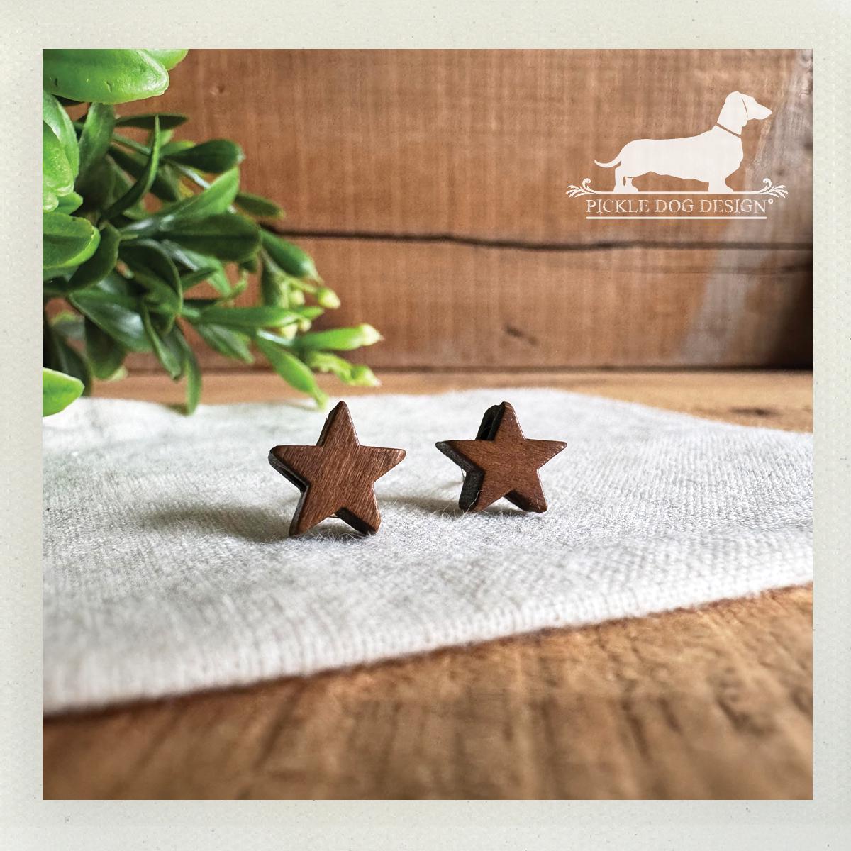 Wood Star. Post Earrings