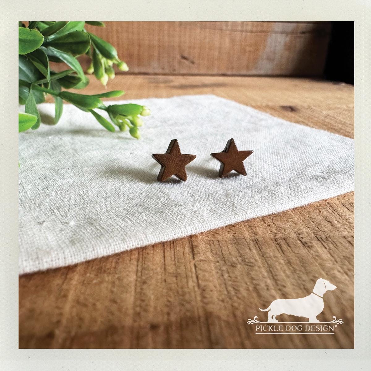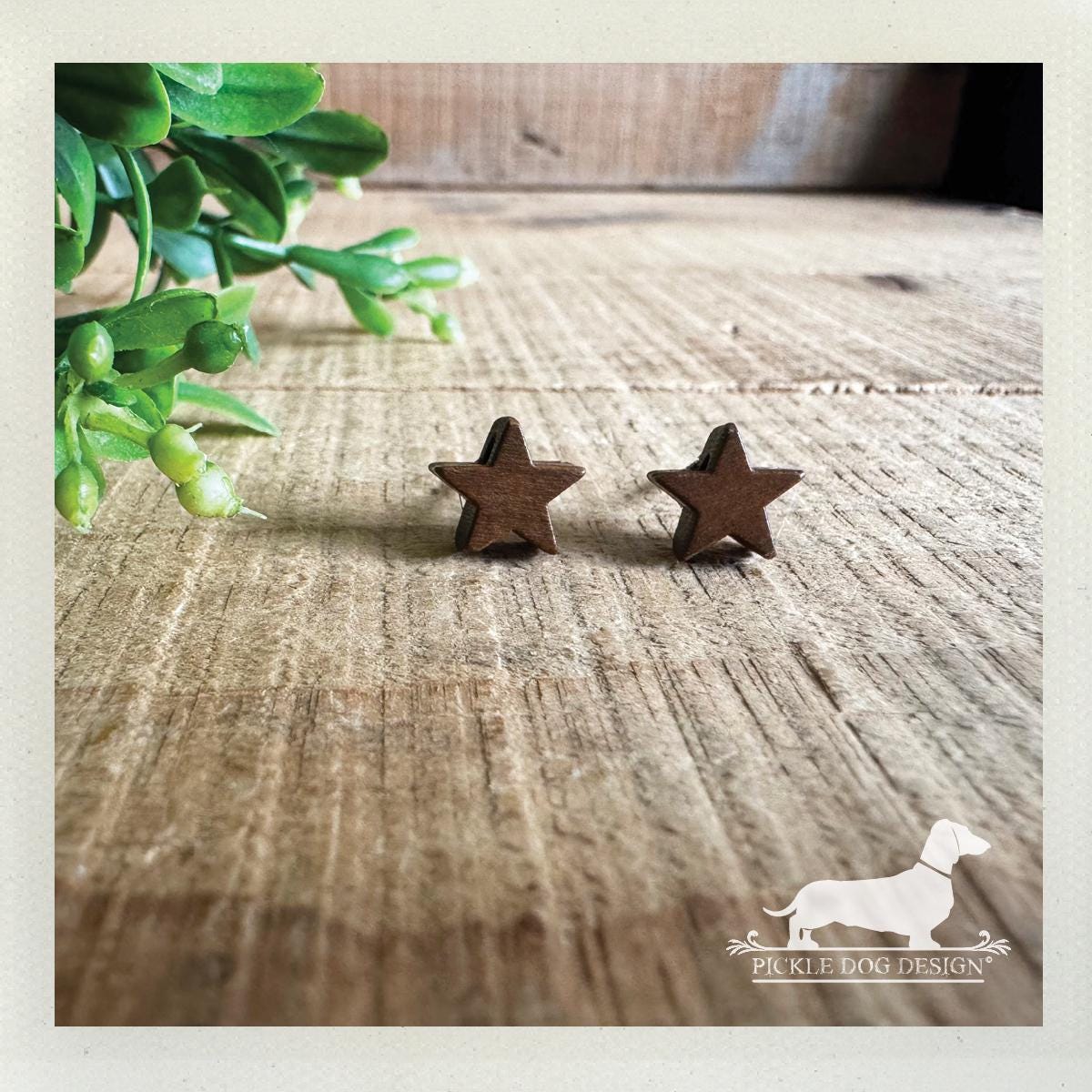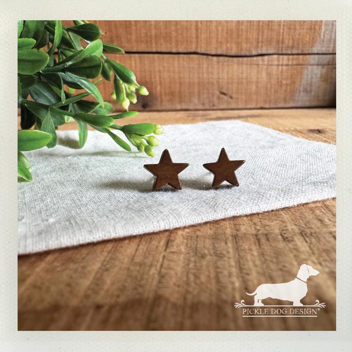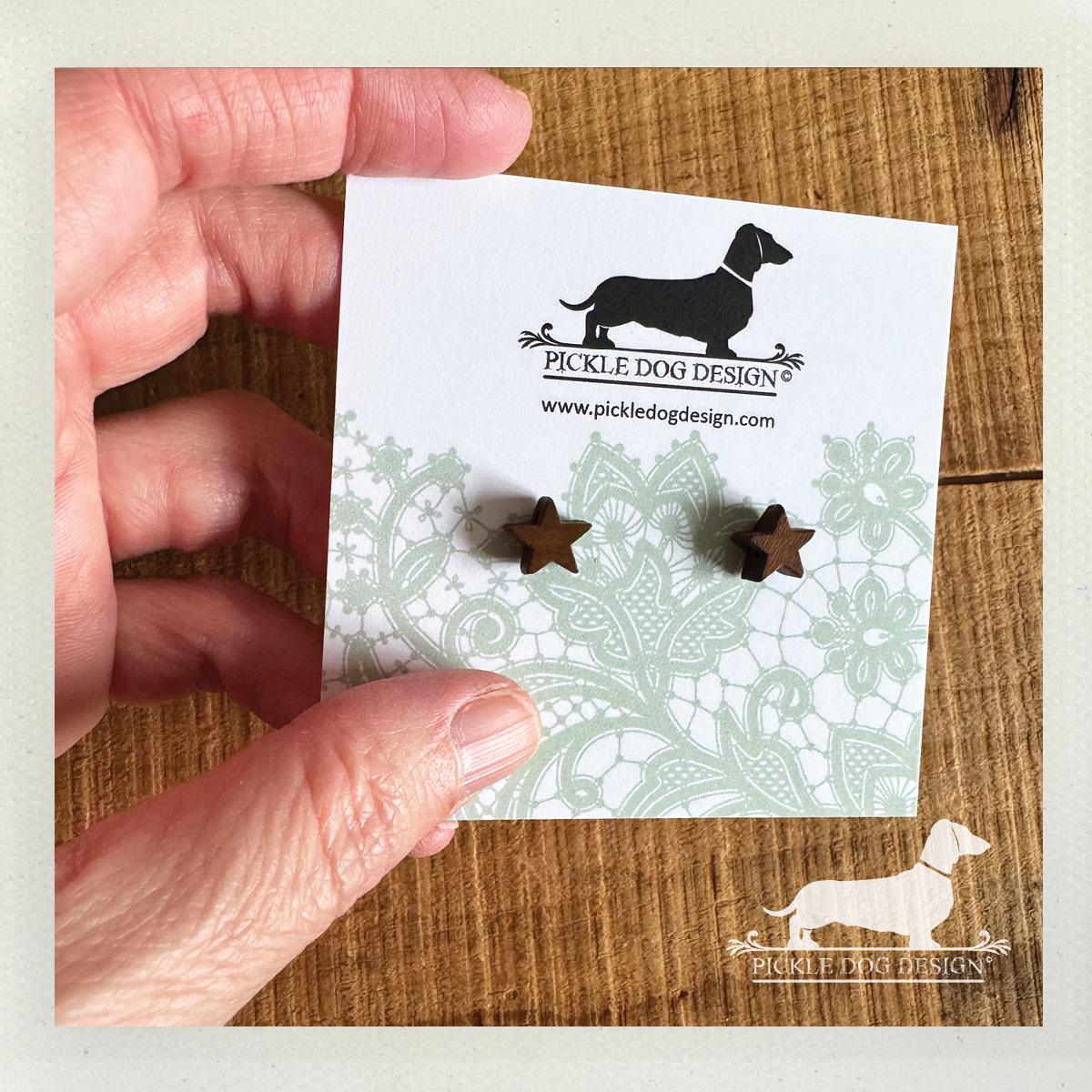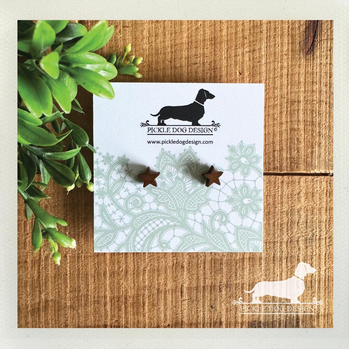 Wood Star. Post Earrings