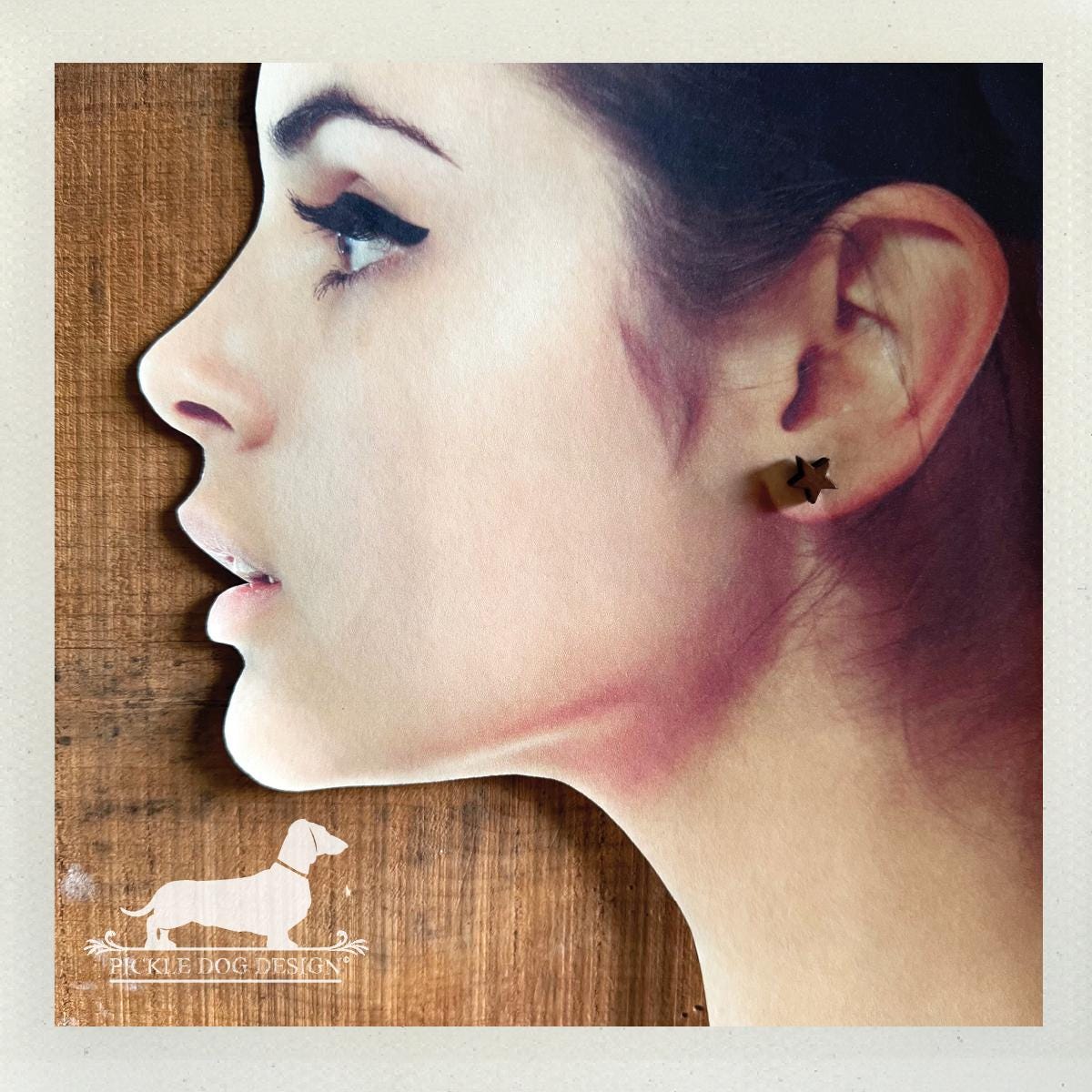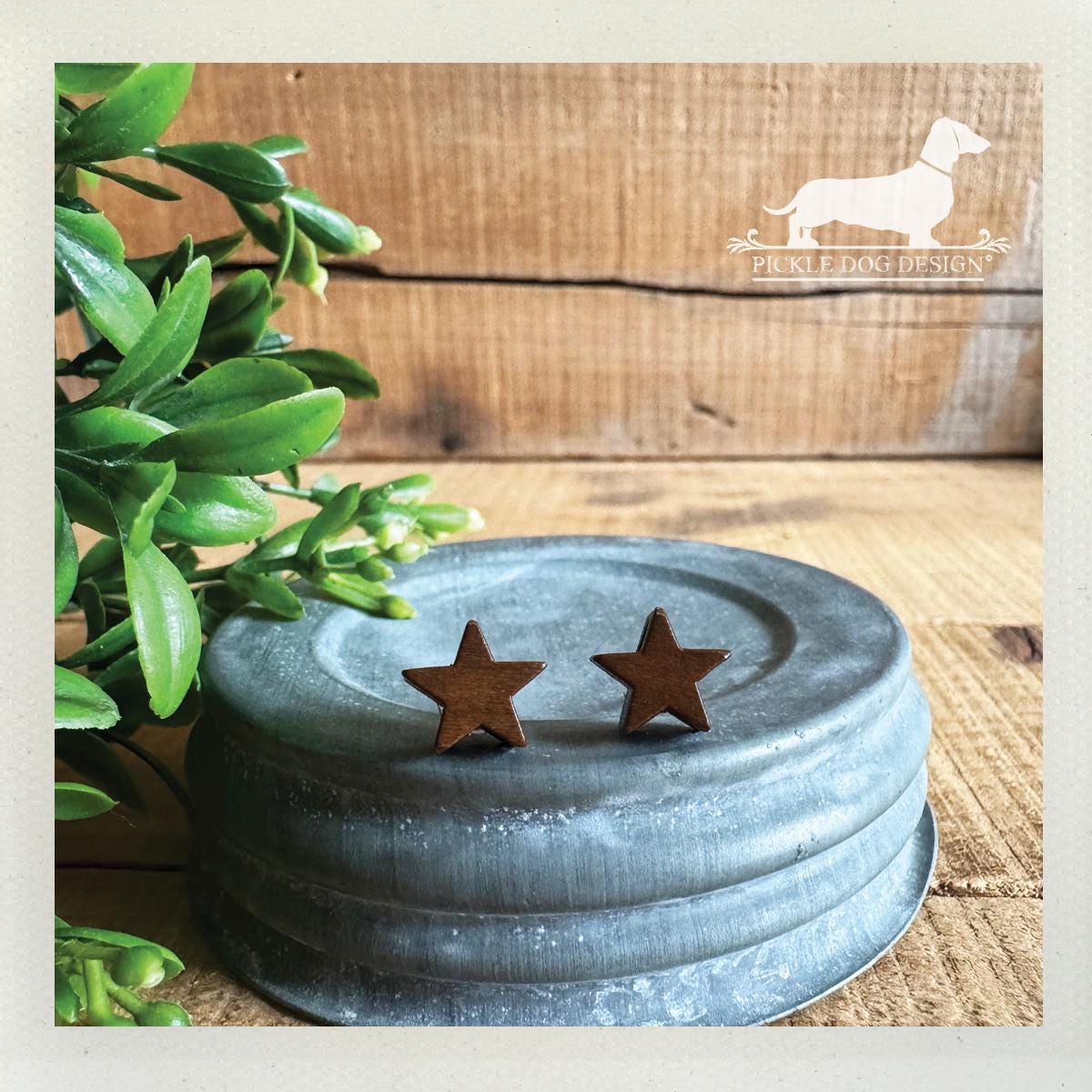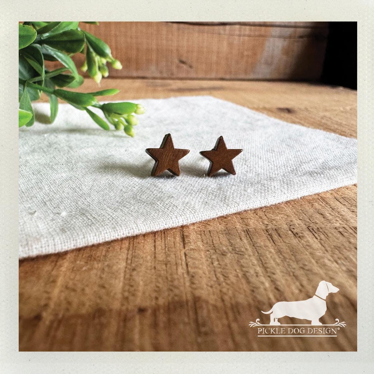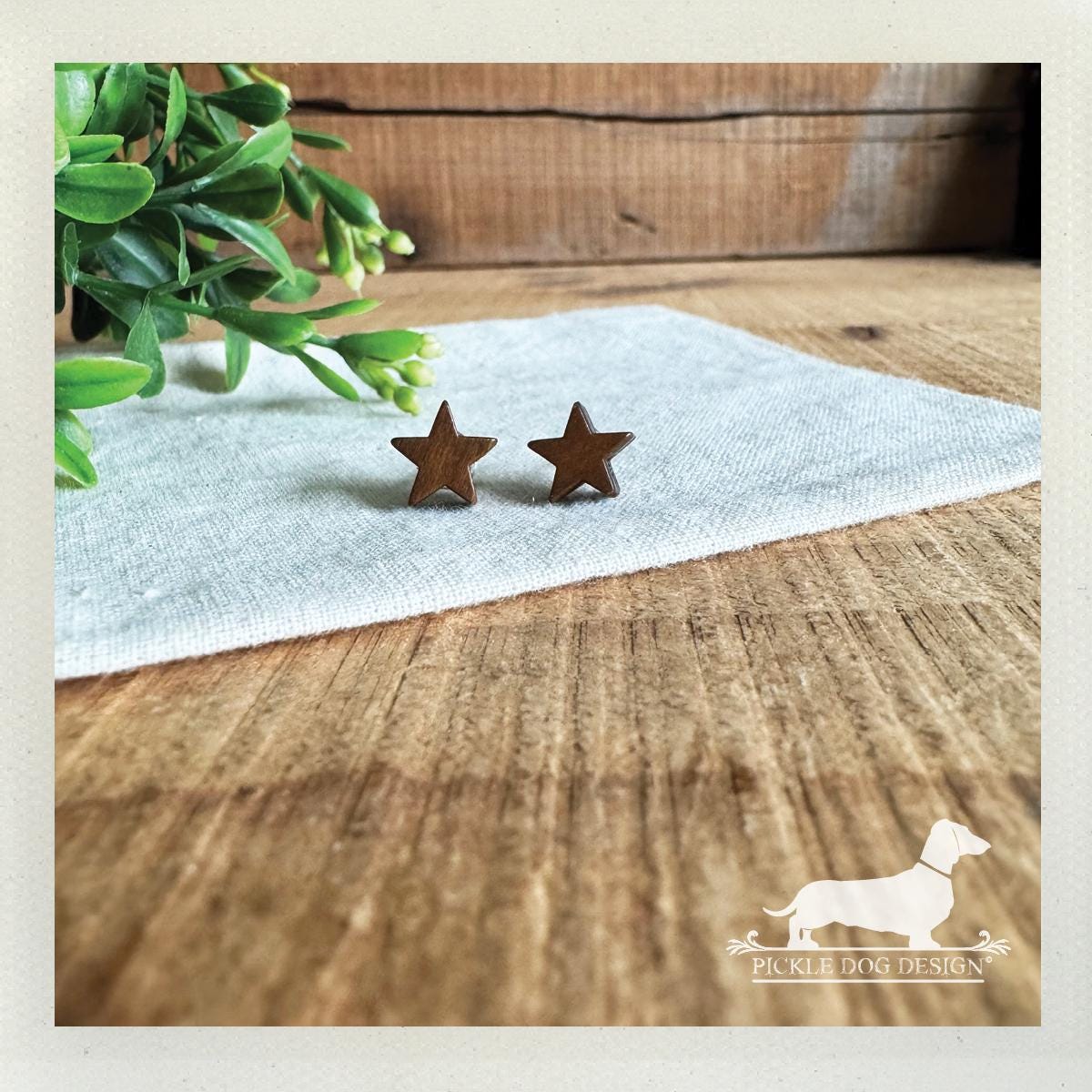 Wood Star. Post Earrings