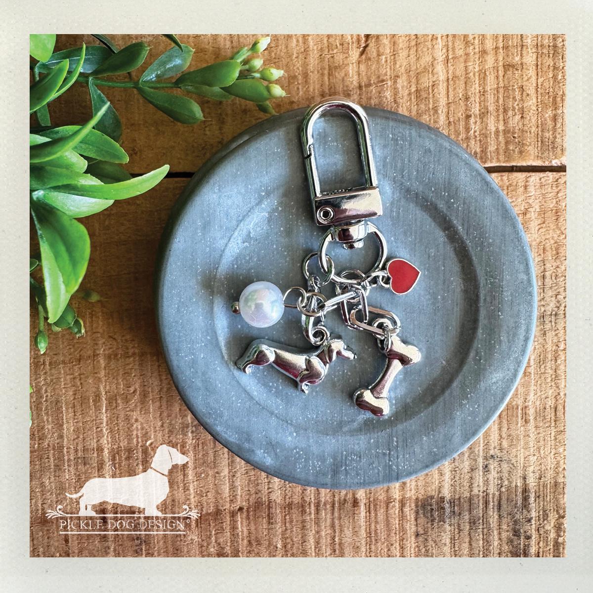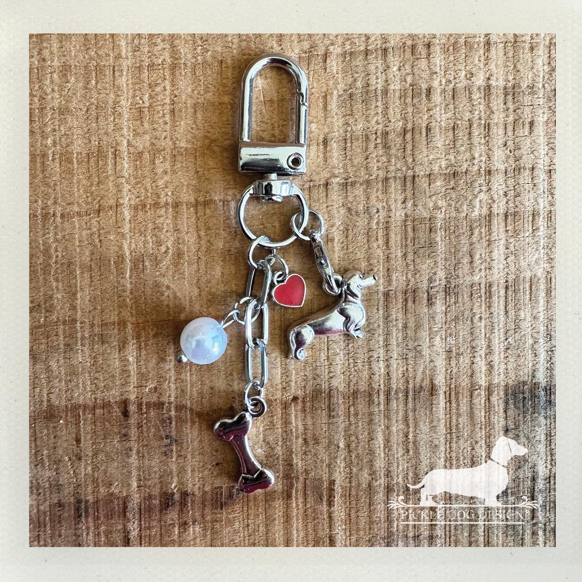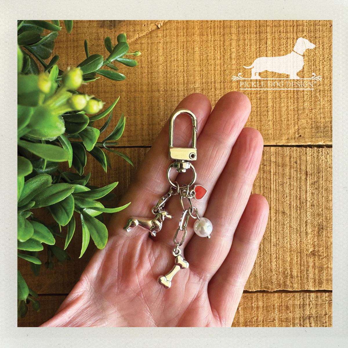 Want to show your love for the doxie? Then carry around a mini dachshund with your keys... or on your purse or backpack! This keychain makes a thoughtful gift or a fun personal treat, bringing a touch of joy to doxie lovers!