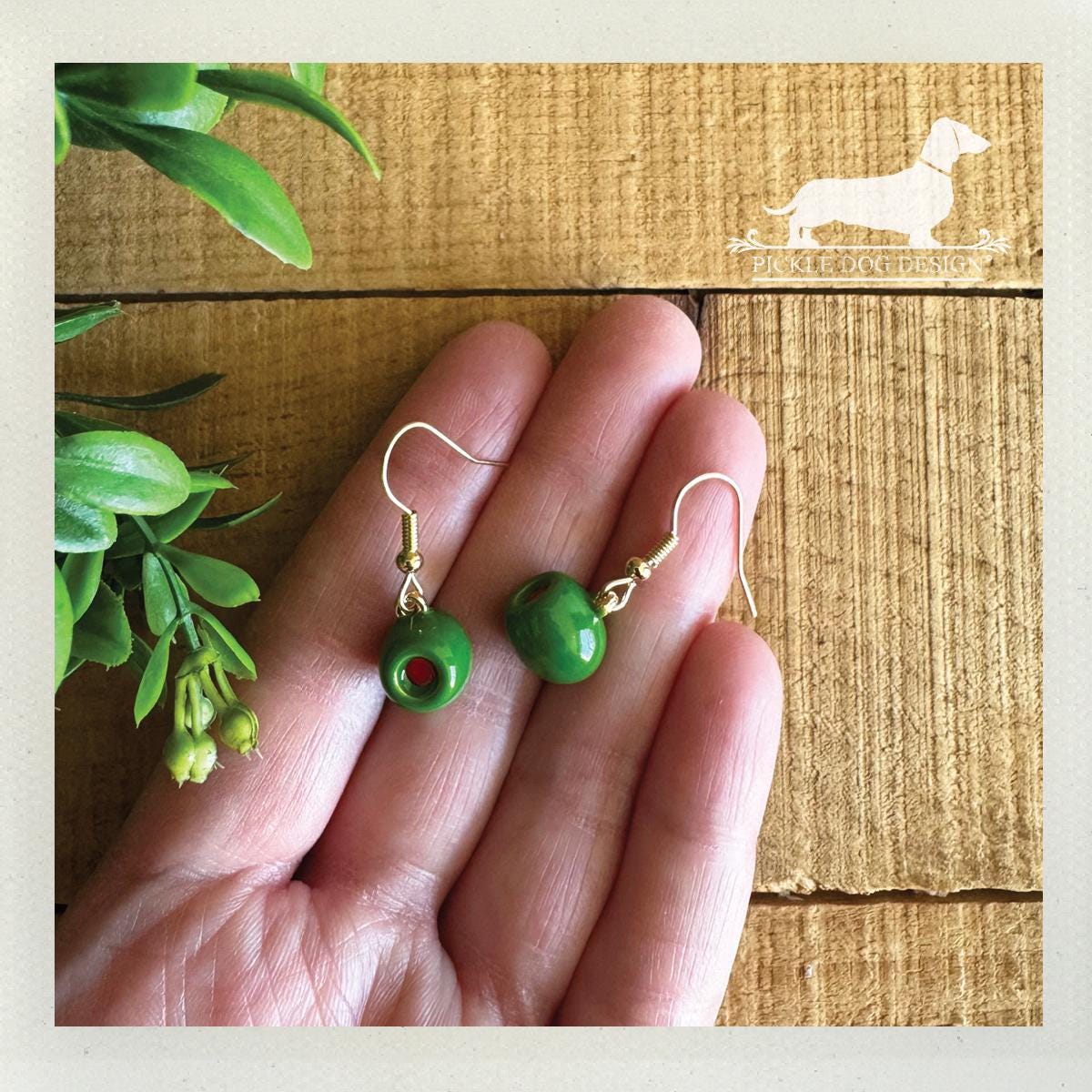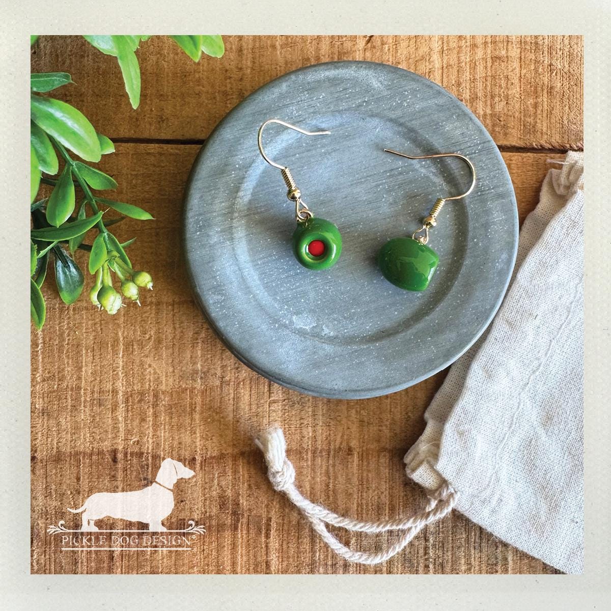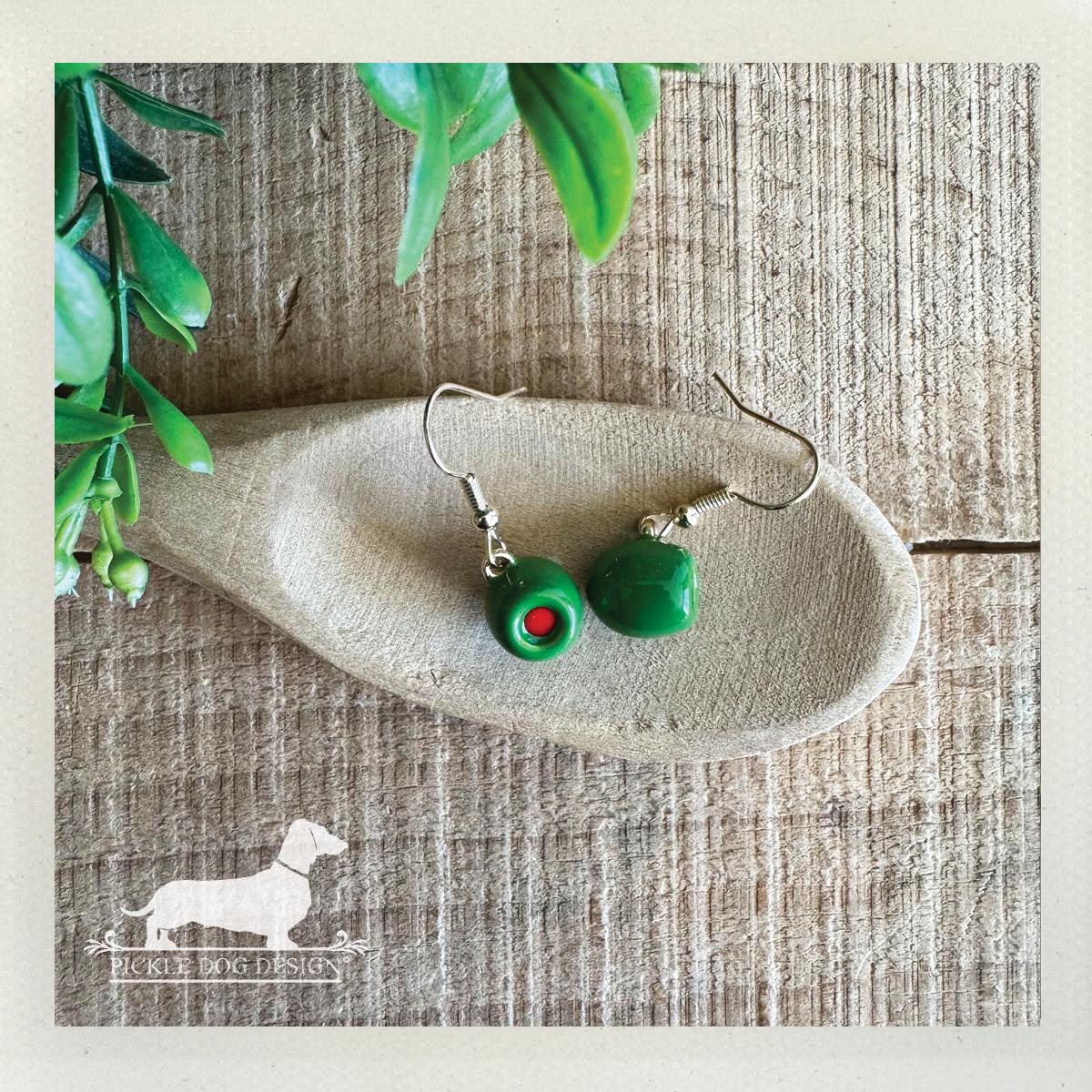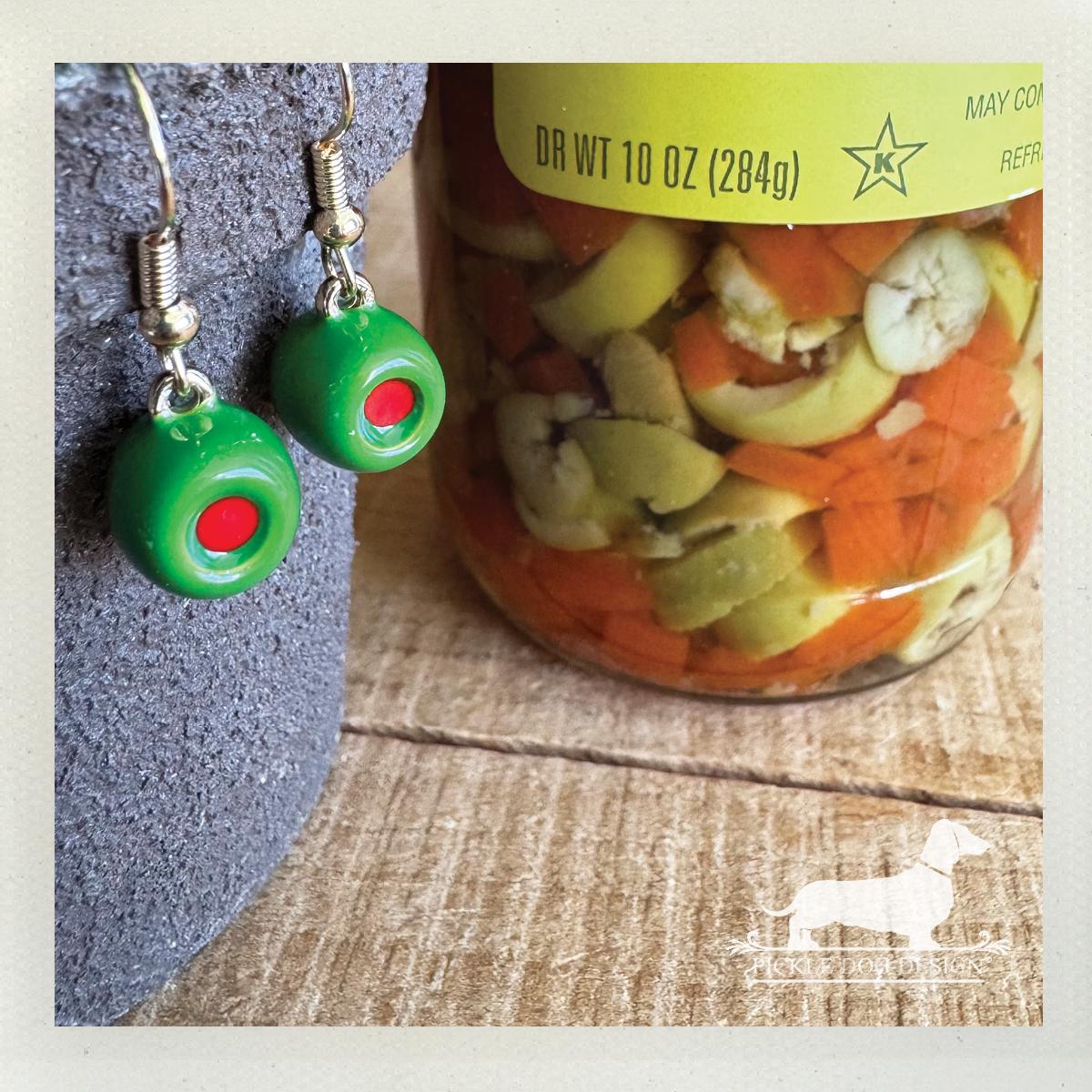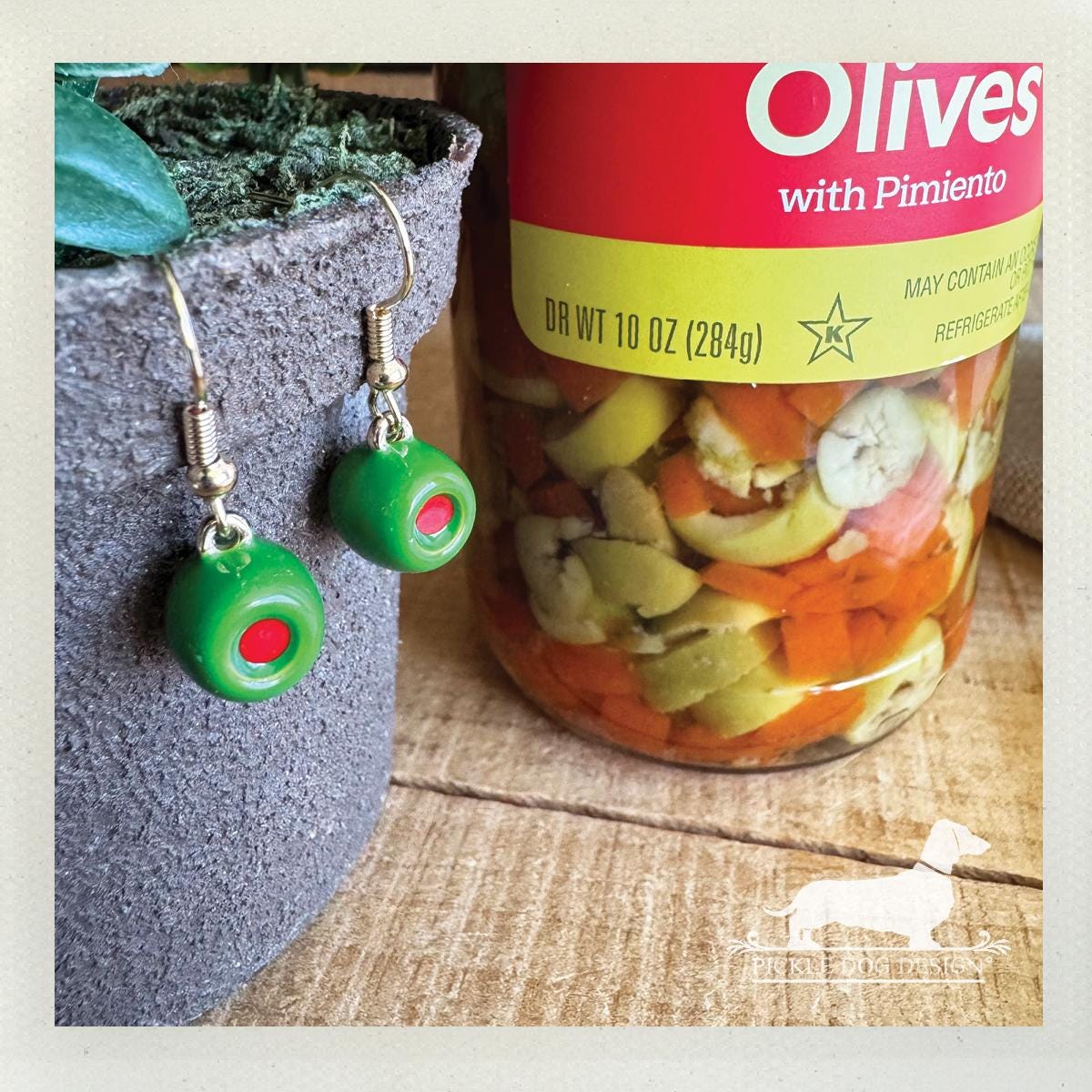 Olives measure about 0.25" x 0.5" (6mm x 13mm).