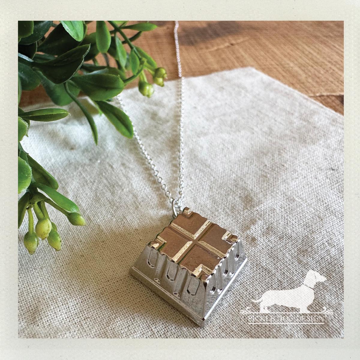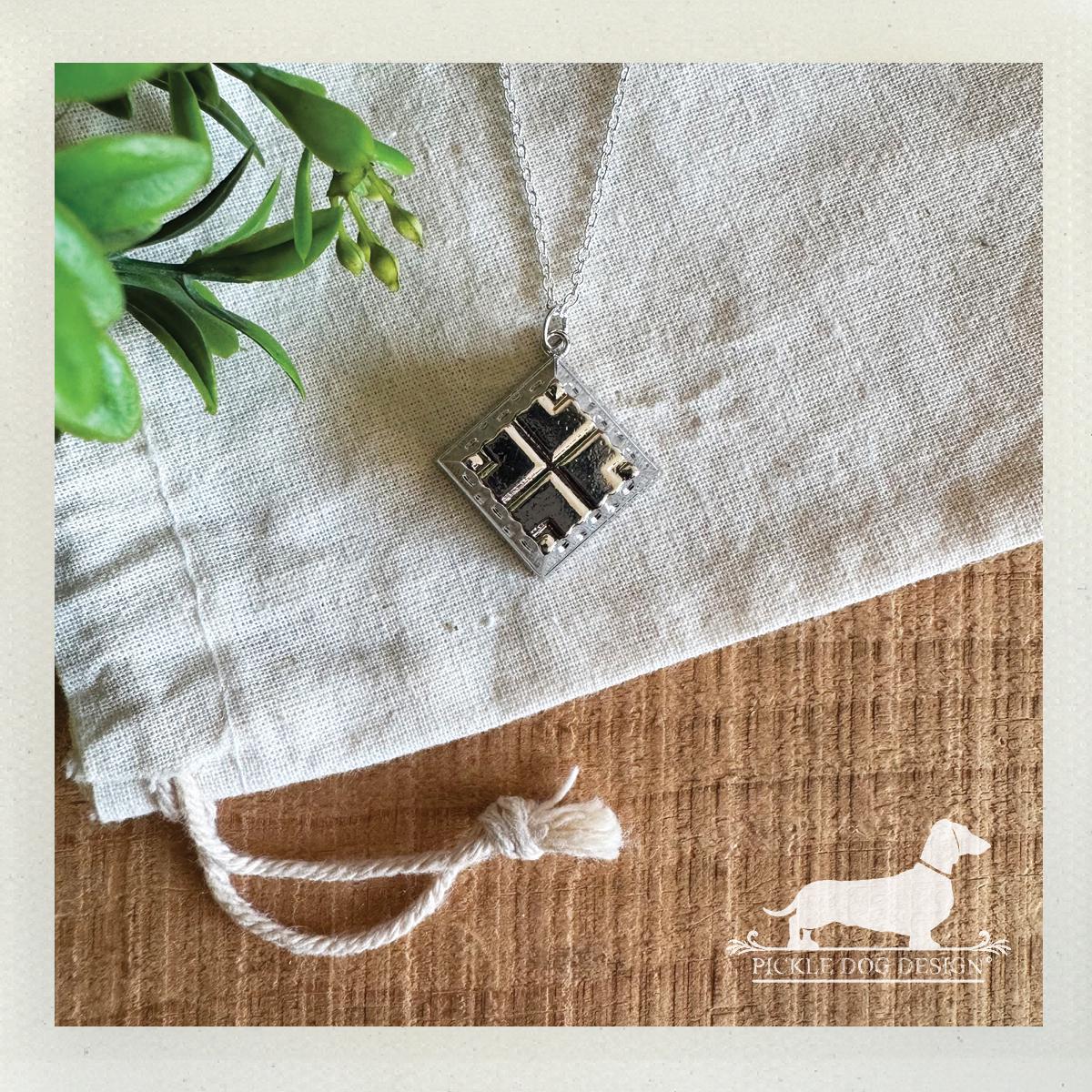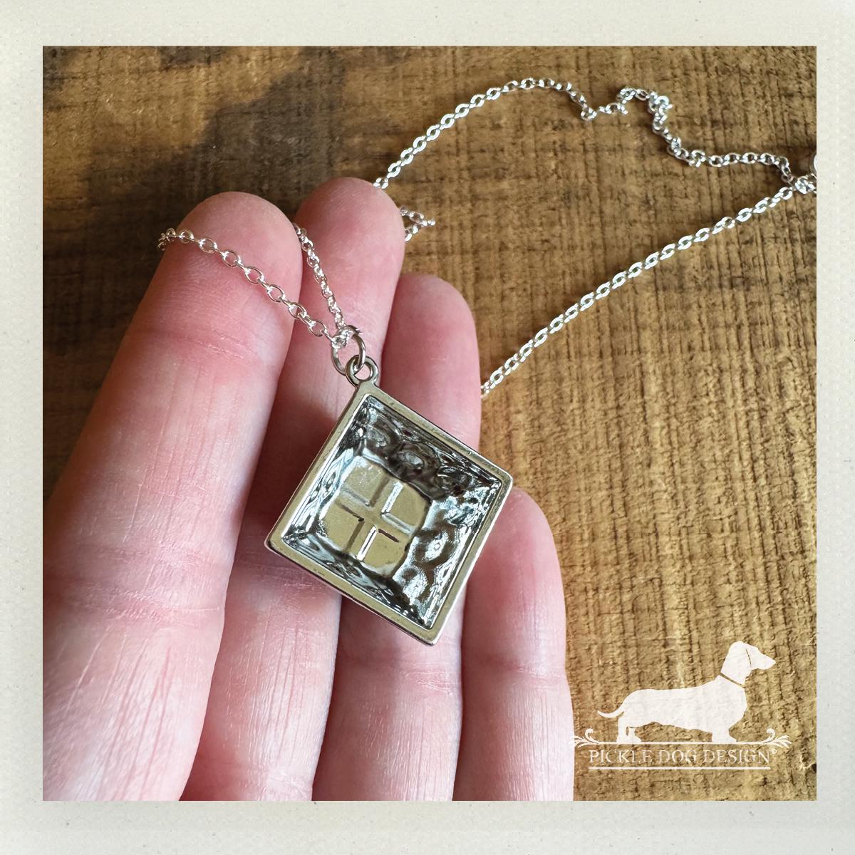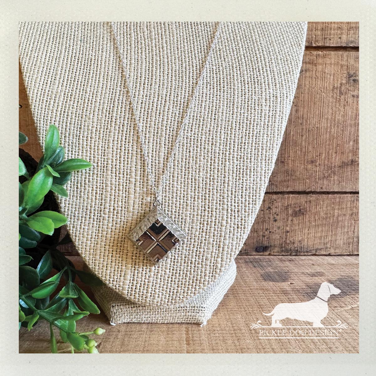 Silver Quilted Square. Necklace