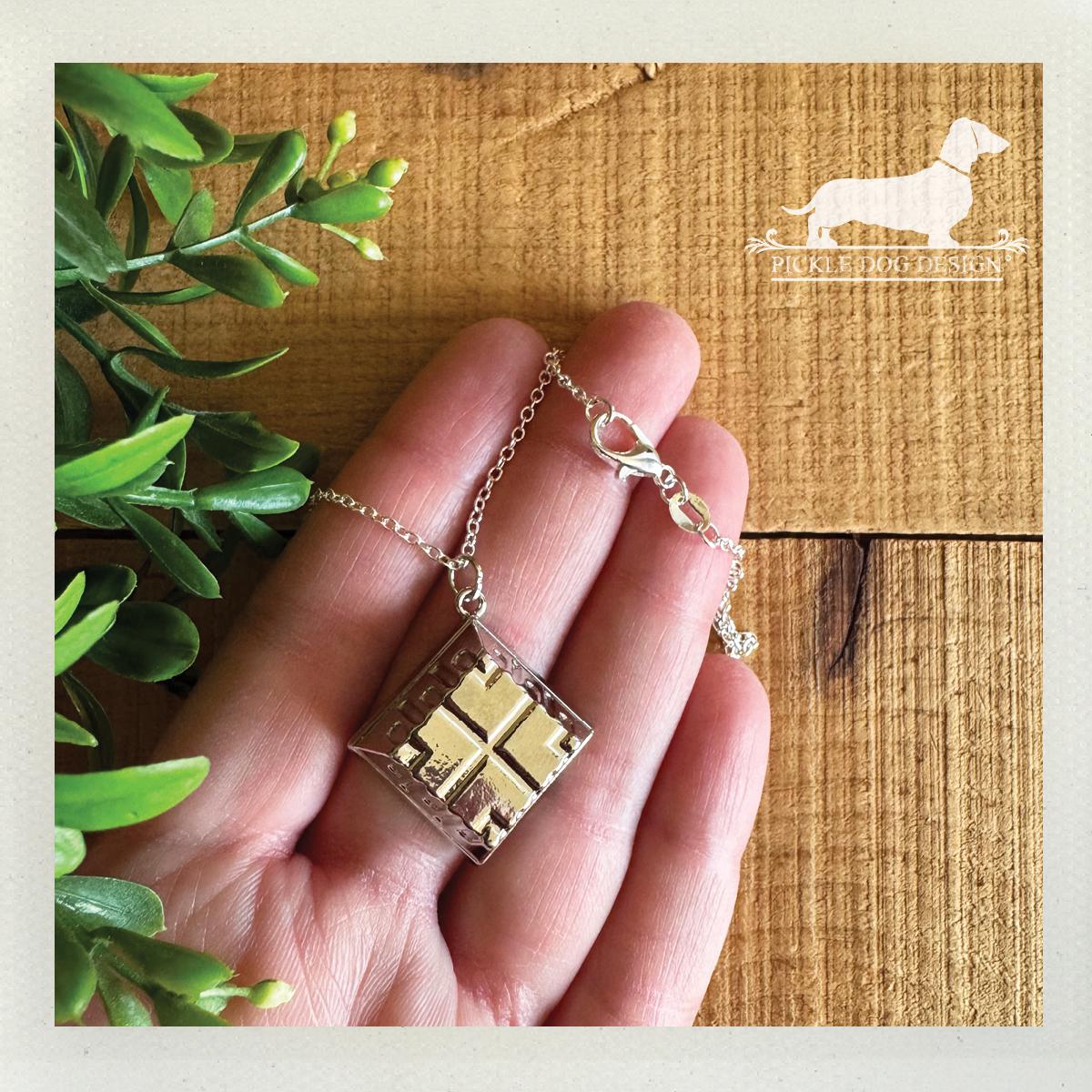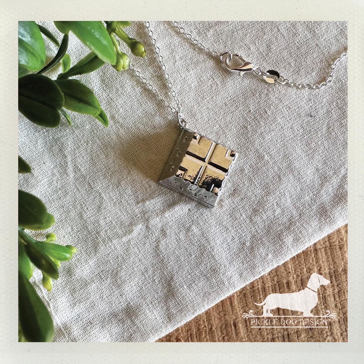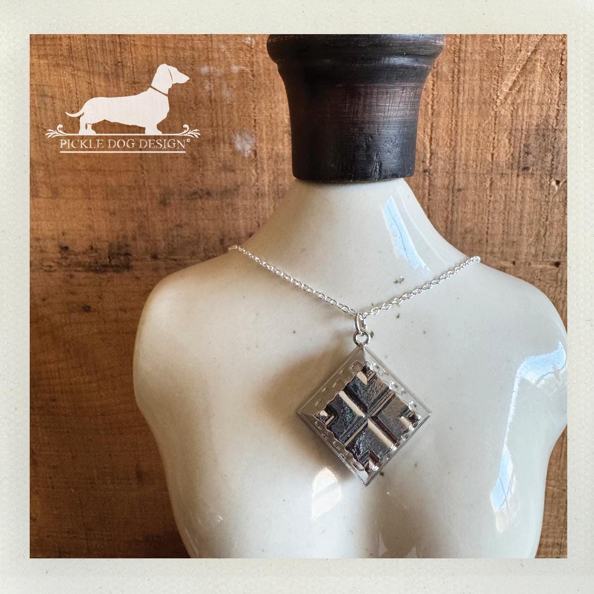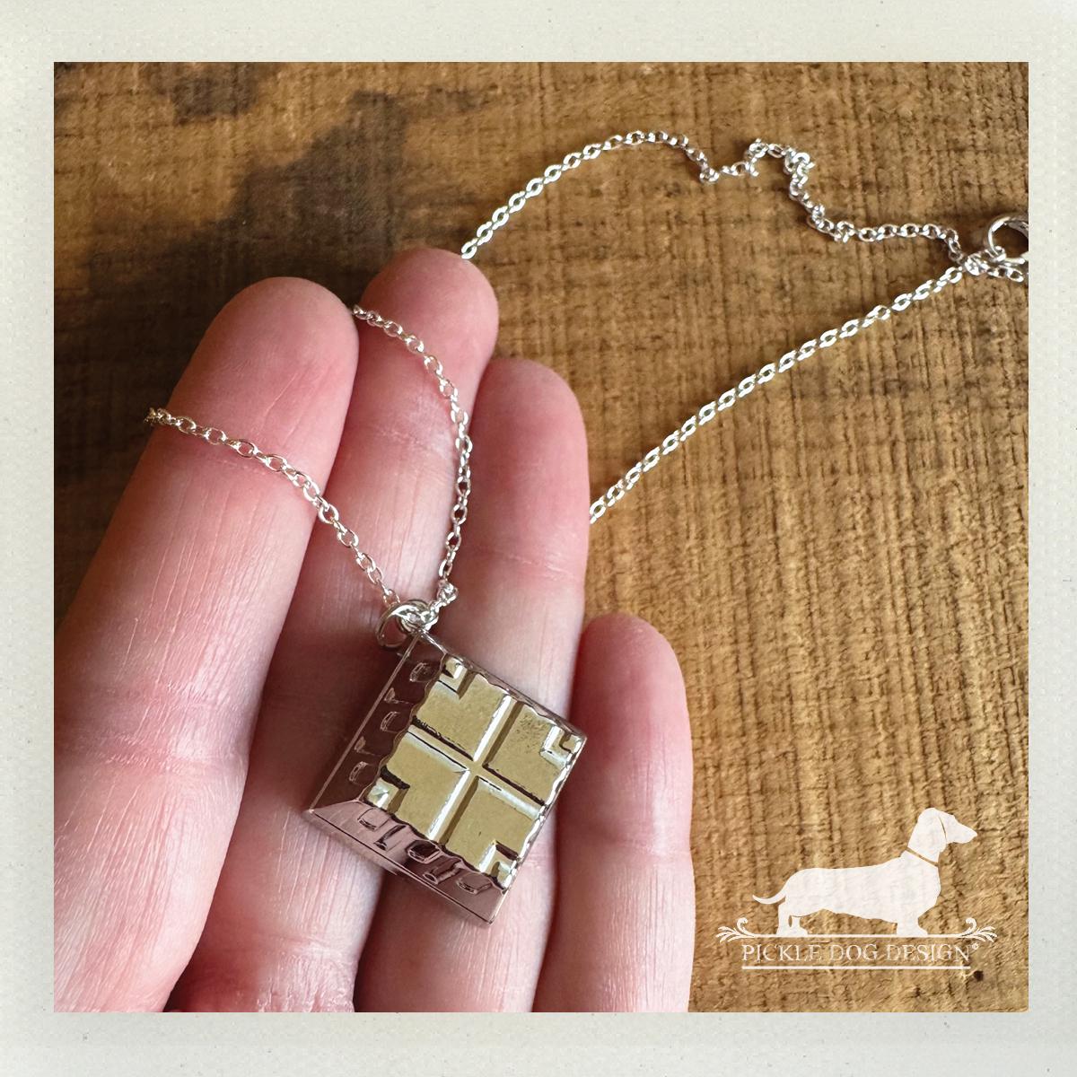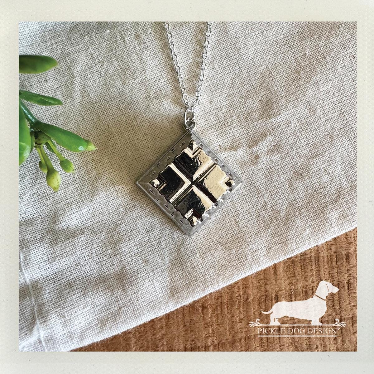 Silver Quilted Square. Necklace