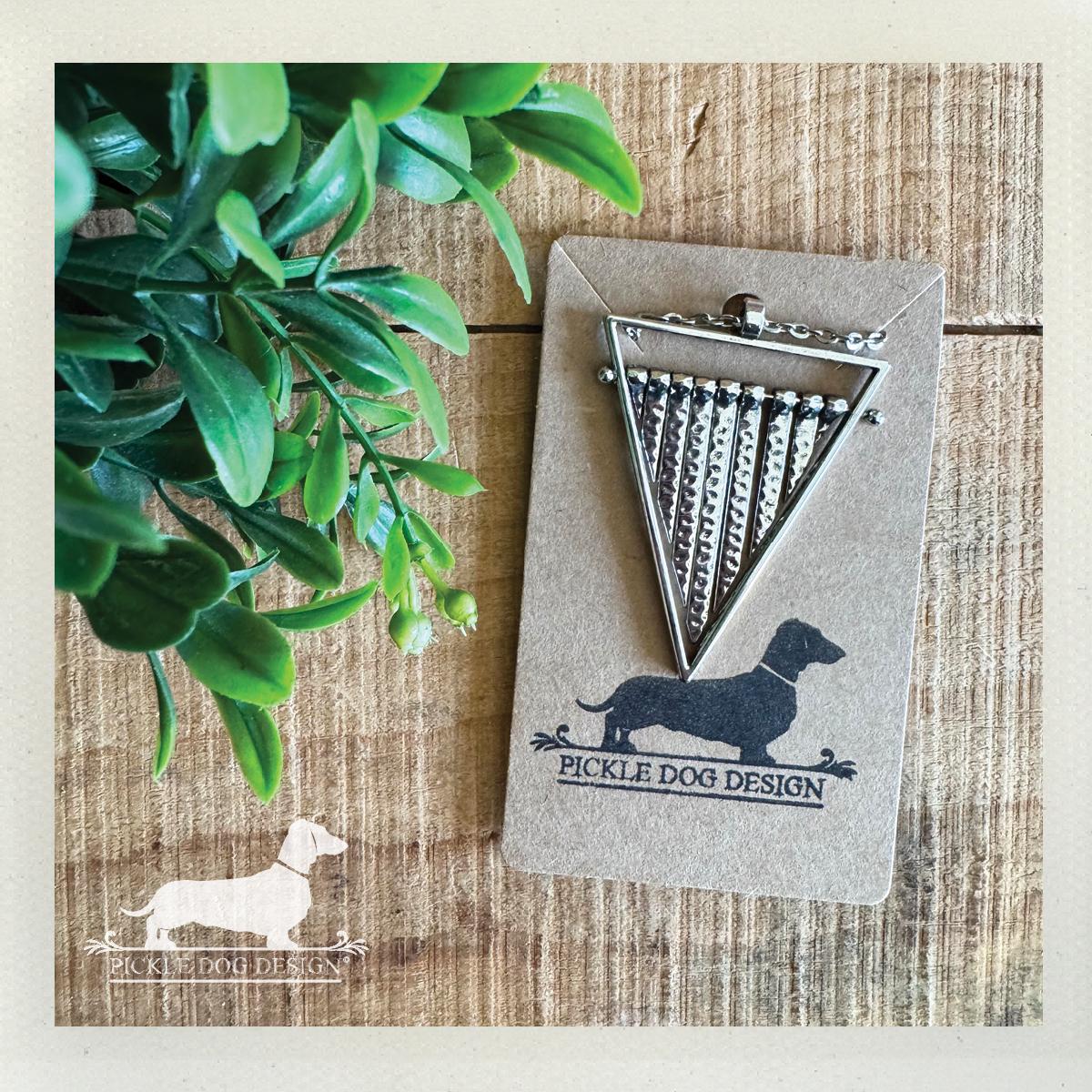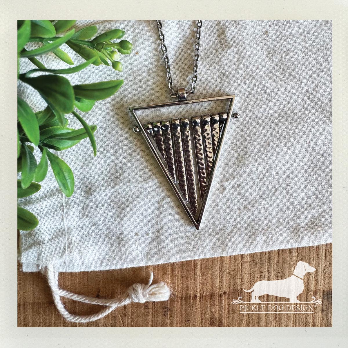 Pendant measures about 1.5" x 2" (38mm x 50mm).