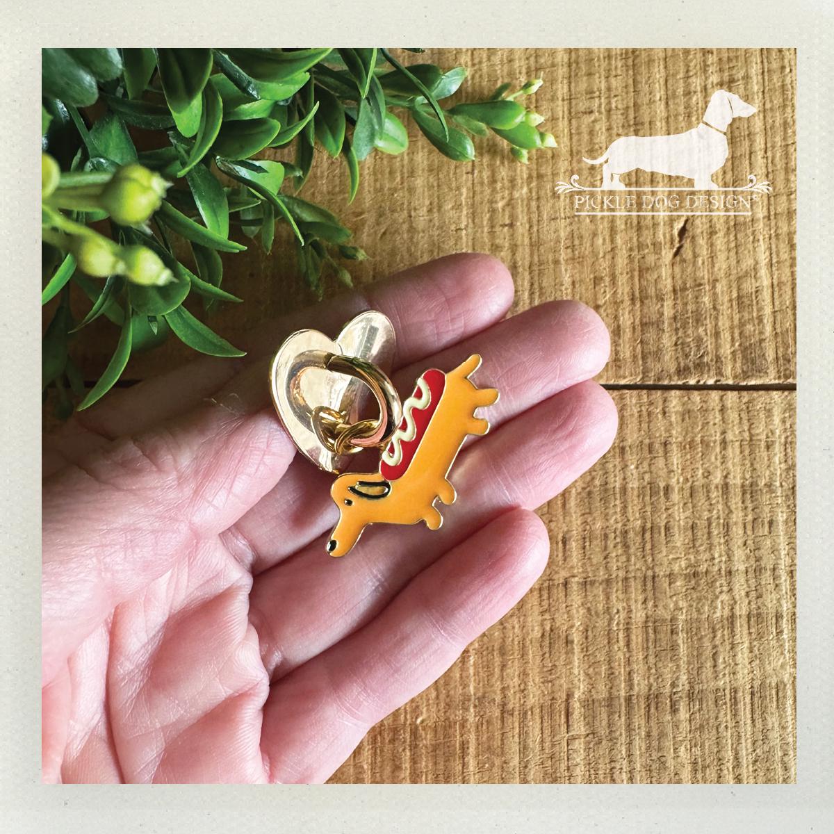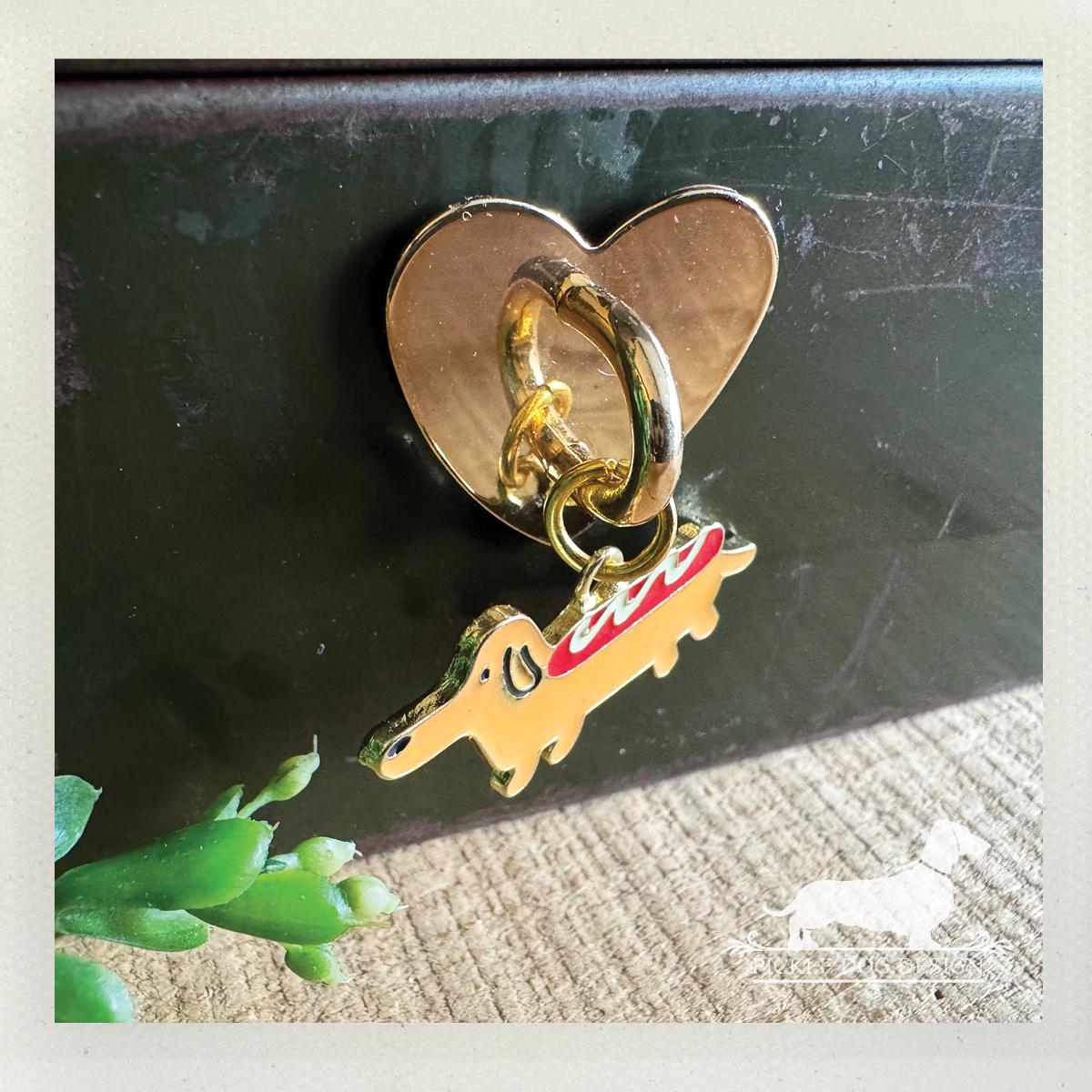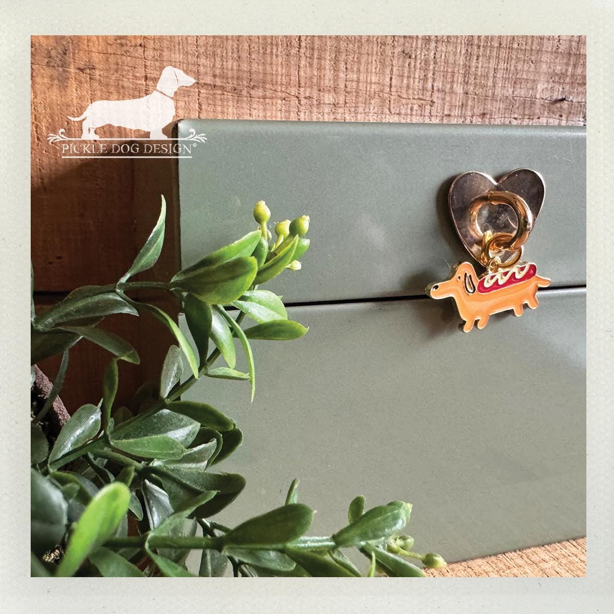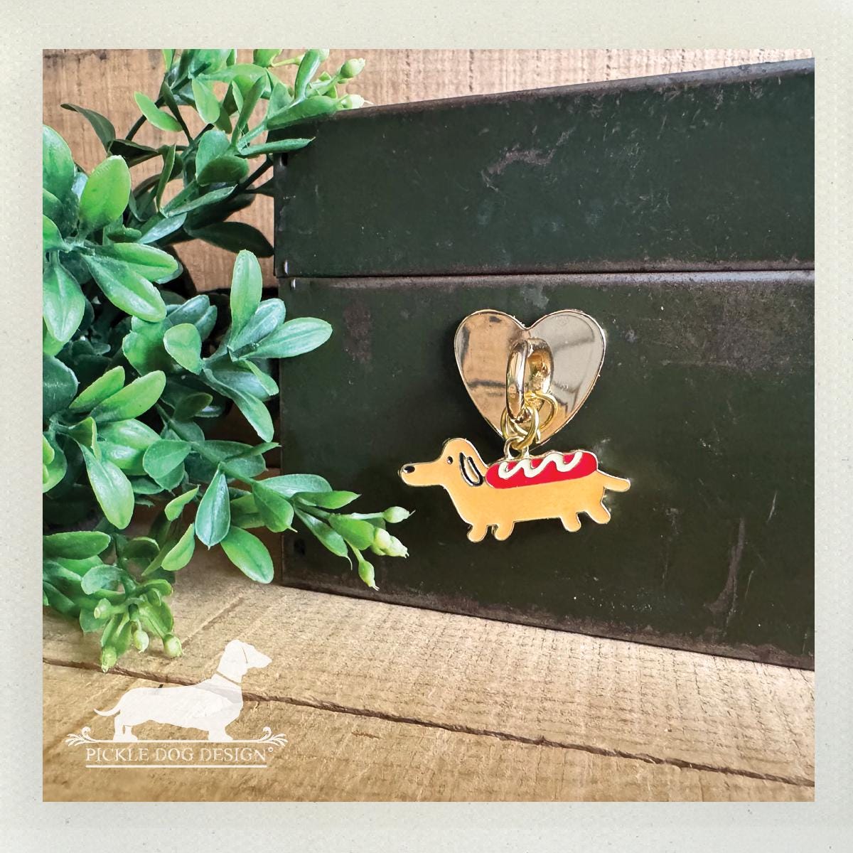 Hot dog doxie charm measures about 1.5" x 0.75" (38mm x 19mm).
