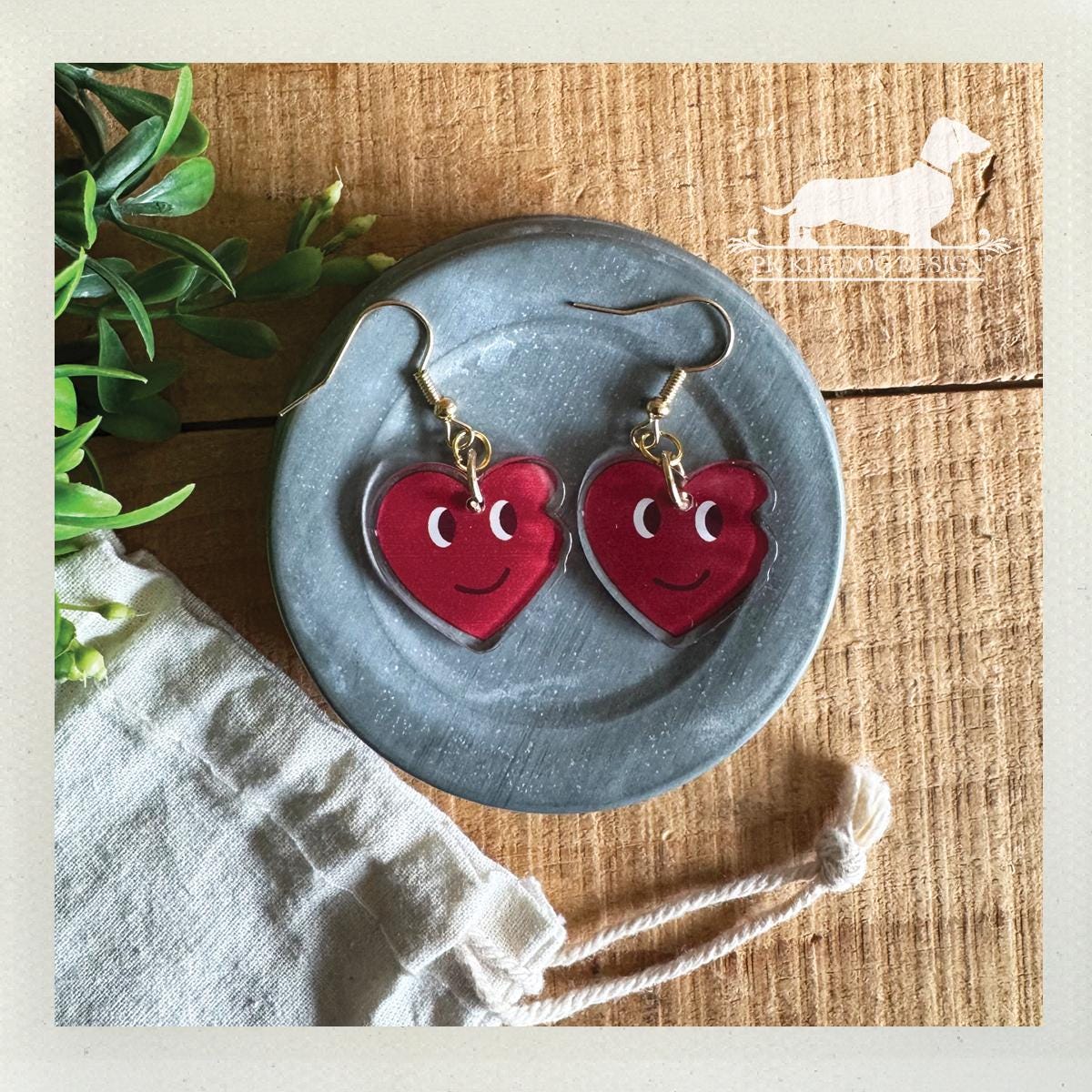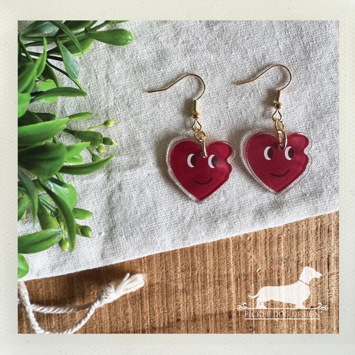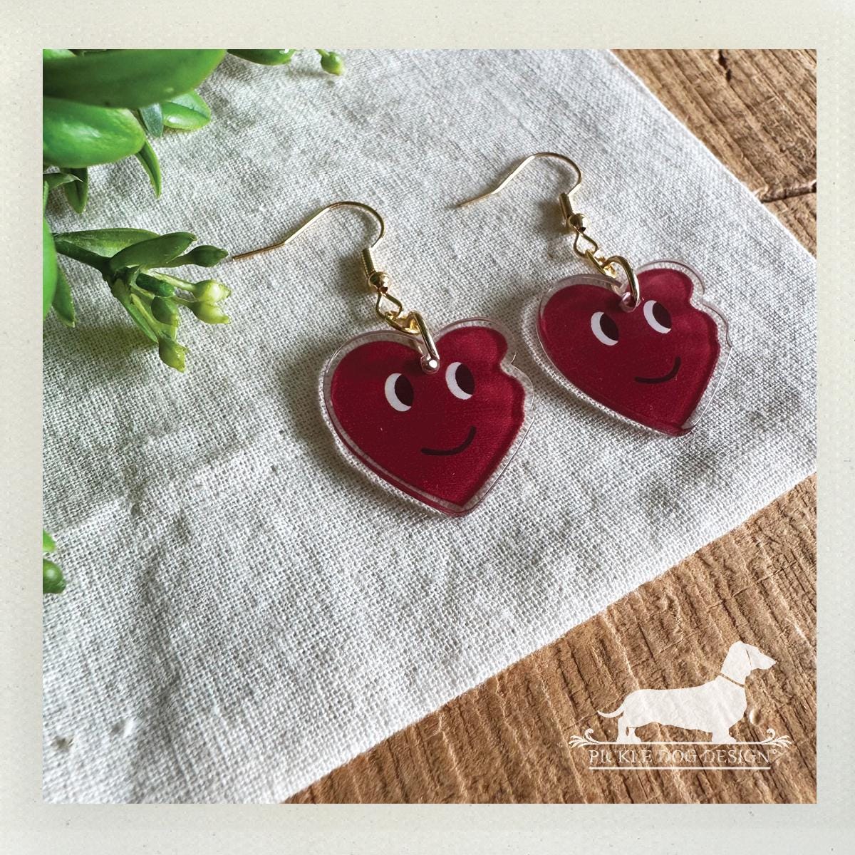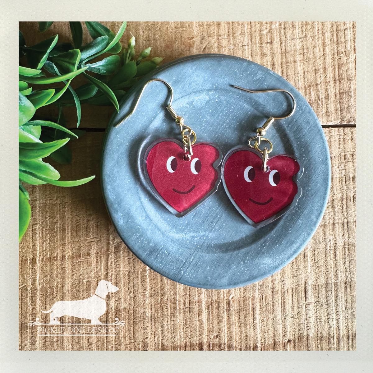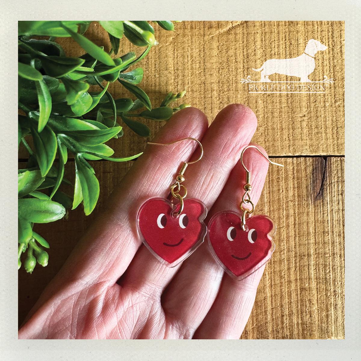 Red Heart Emoji. Dangle Earrings