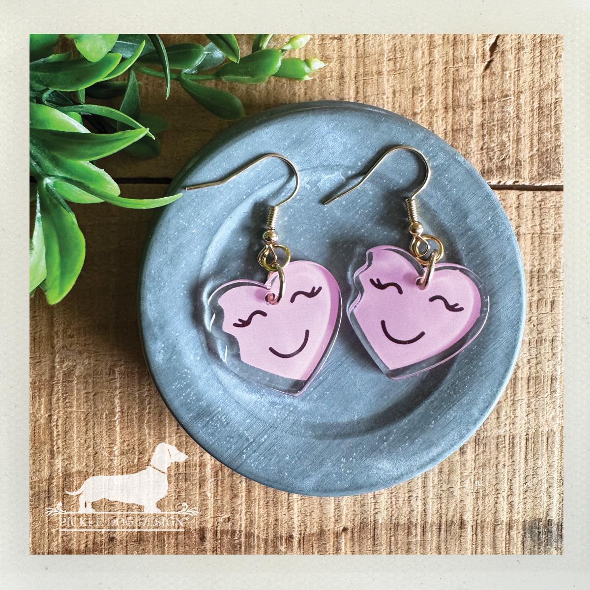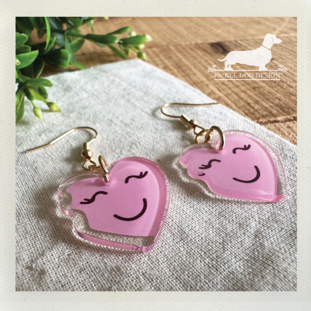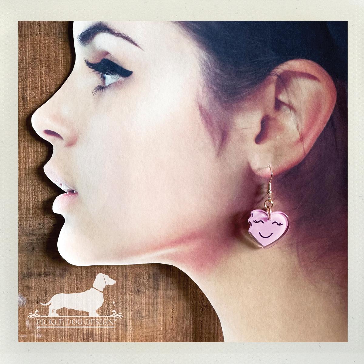 Pink Heart Emoji. Dangle Earrings