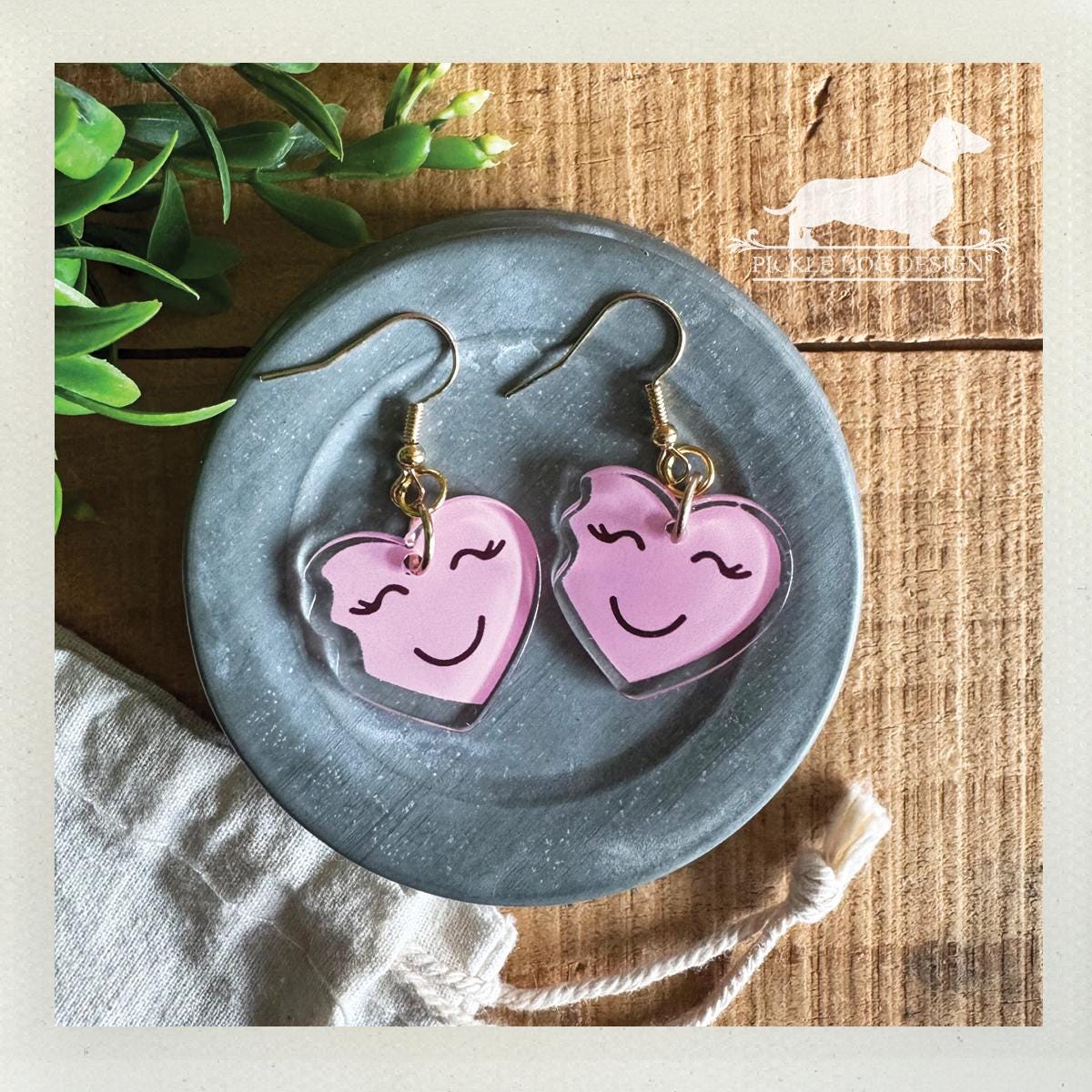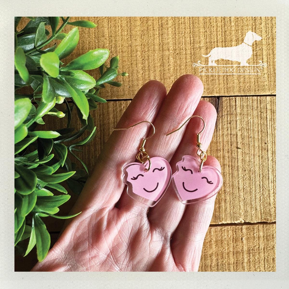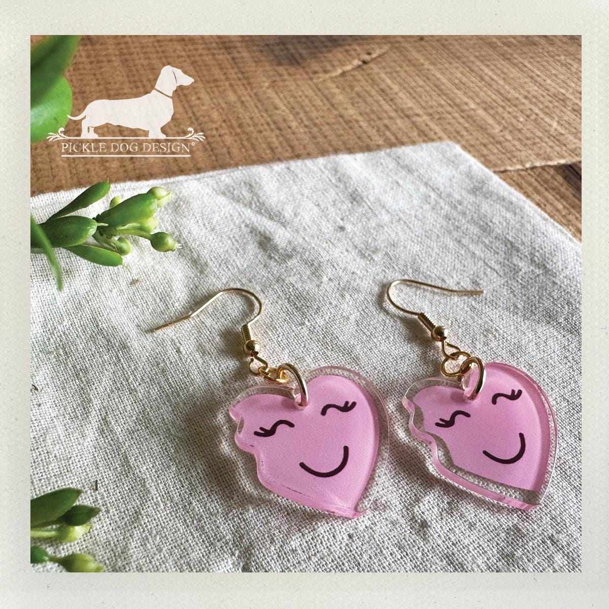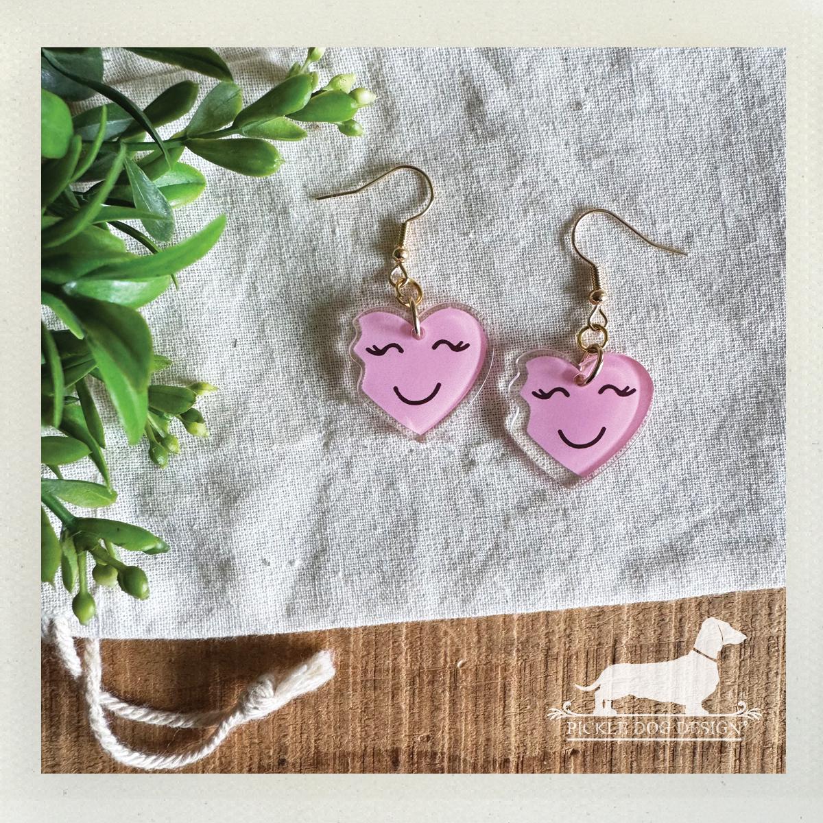 Pink Heart Emoji. Dangle Earrings