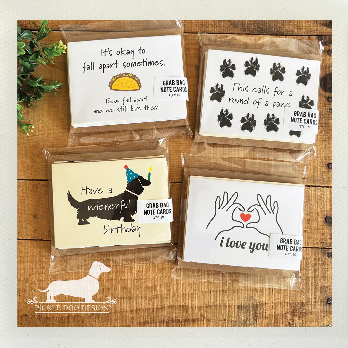 If you like a surprise... our Grab Bag Note Card Set is for you! It includes a combination of ten different card designs.