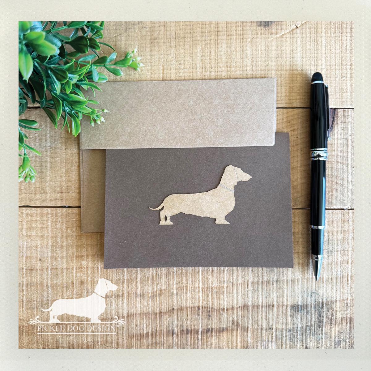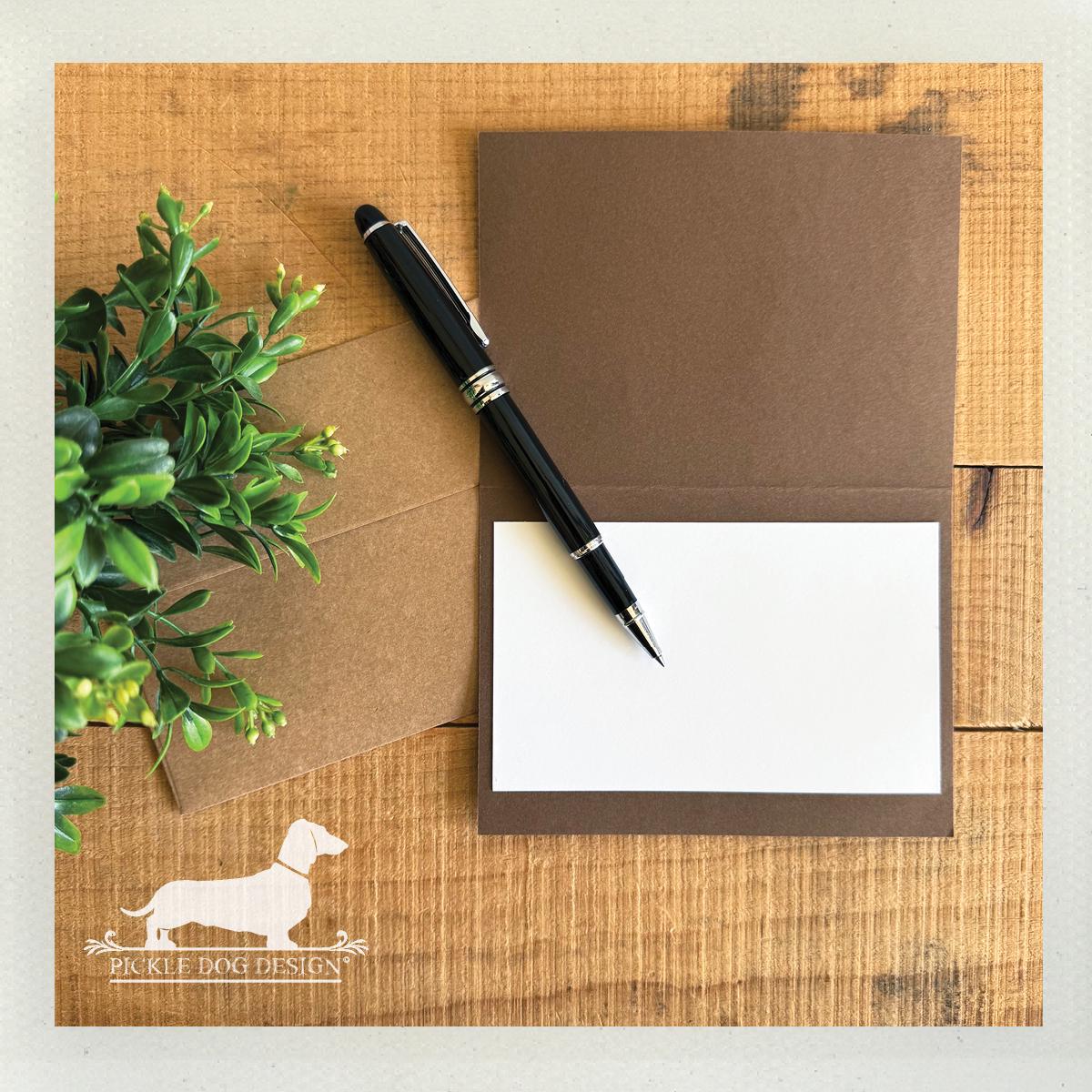 Folded note card measures 5.25" x 3.875" and is paired with a brown kraft envelope.