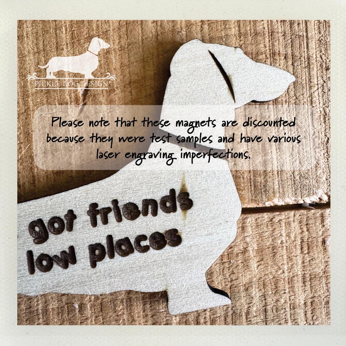 These magnets are discounted because they each have laser engraving imperfections. If interested in ordering more of these magnets without imperfections, they can be found at regular price in our shop.