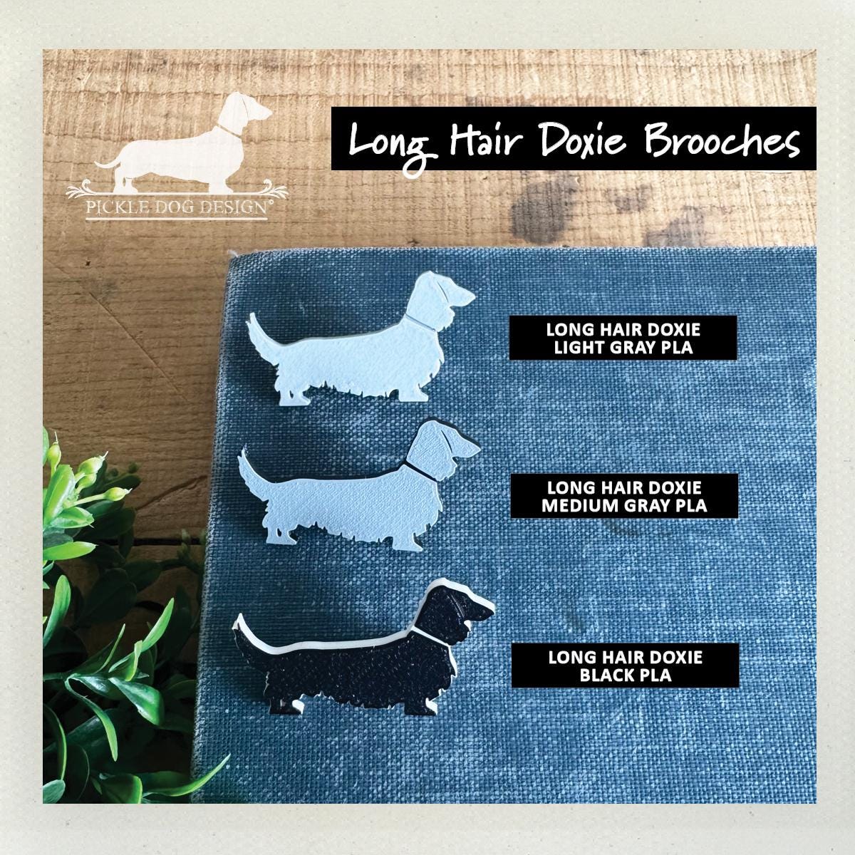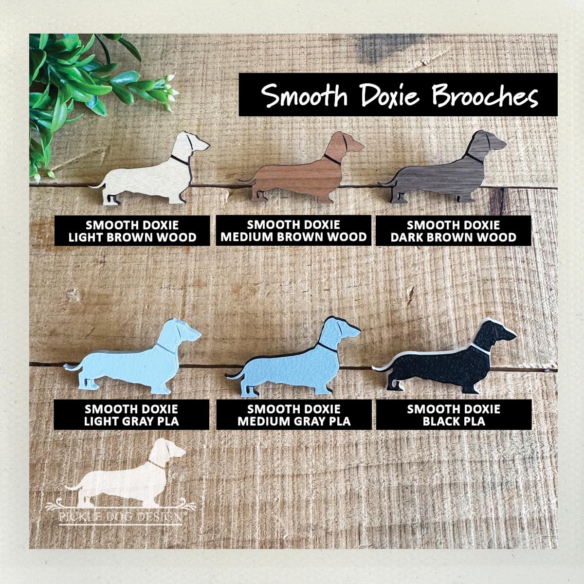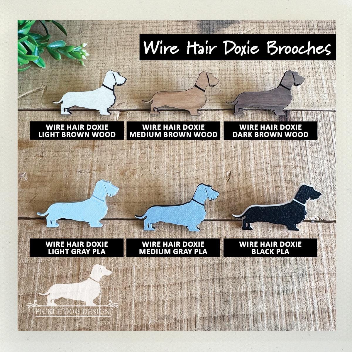 Want to show your love for the doxie? Then wear a little dachshund flair! Featuring our exclusive doxie designs laser cut from maple, cherry, and walnut wood and 3D printed with PLA filament. Makes a perfect gift!