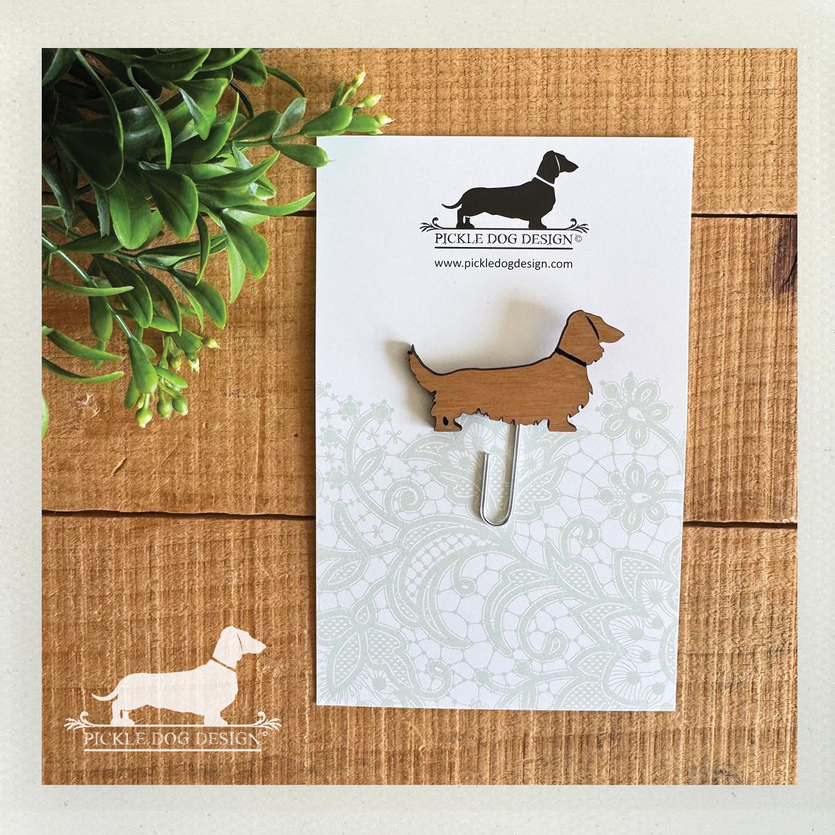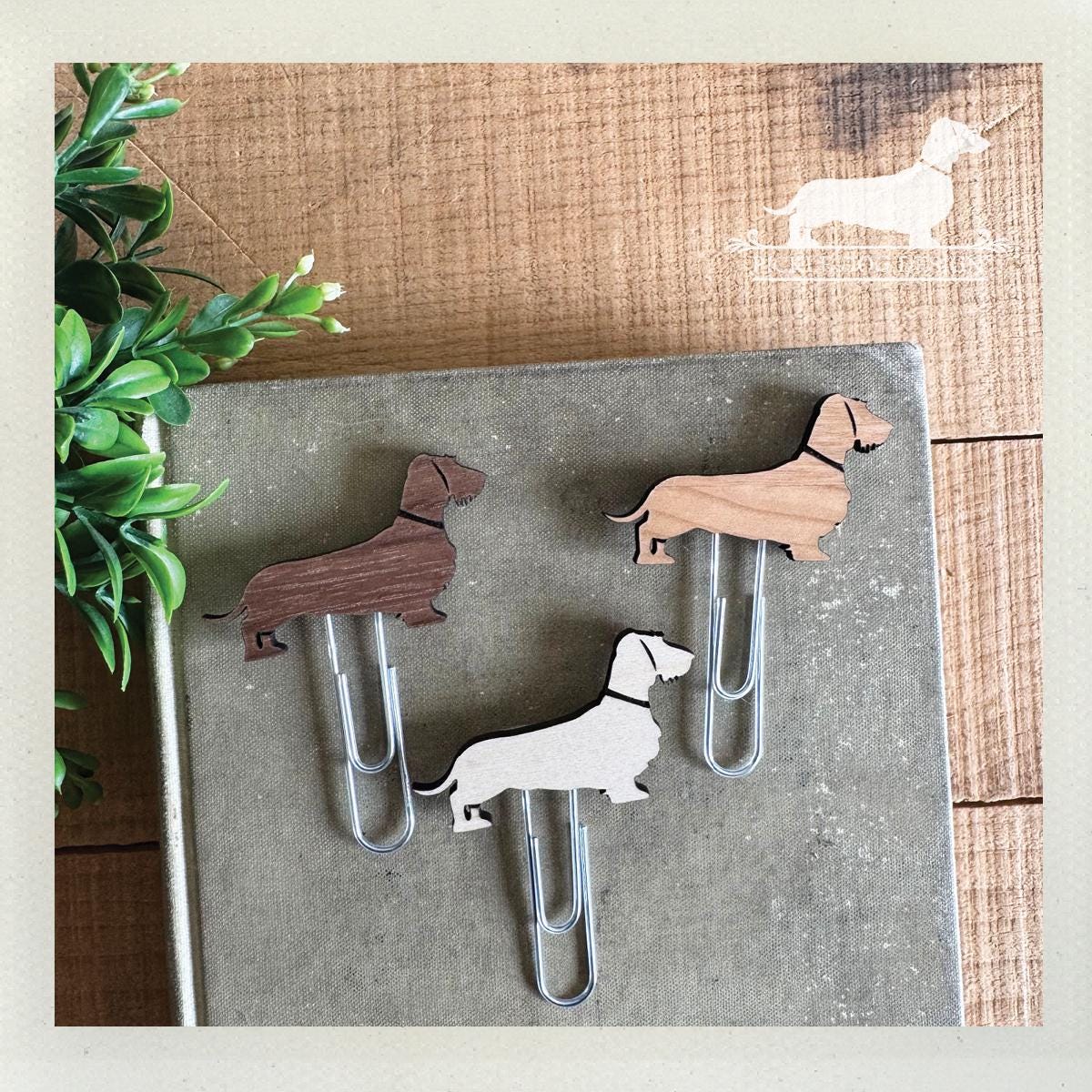 Want to show your love for the doxie? Now you can with these dachshund paperclips! Great to use as book markers in your planner or any other book. Featuring our exclusive design laser cut from maple wood. Makes a perfect gift!